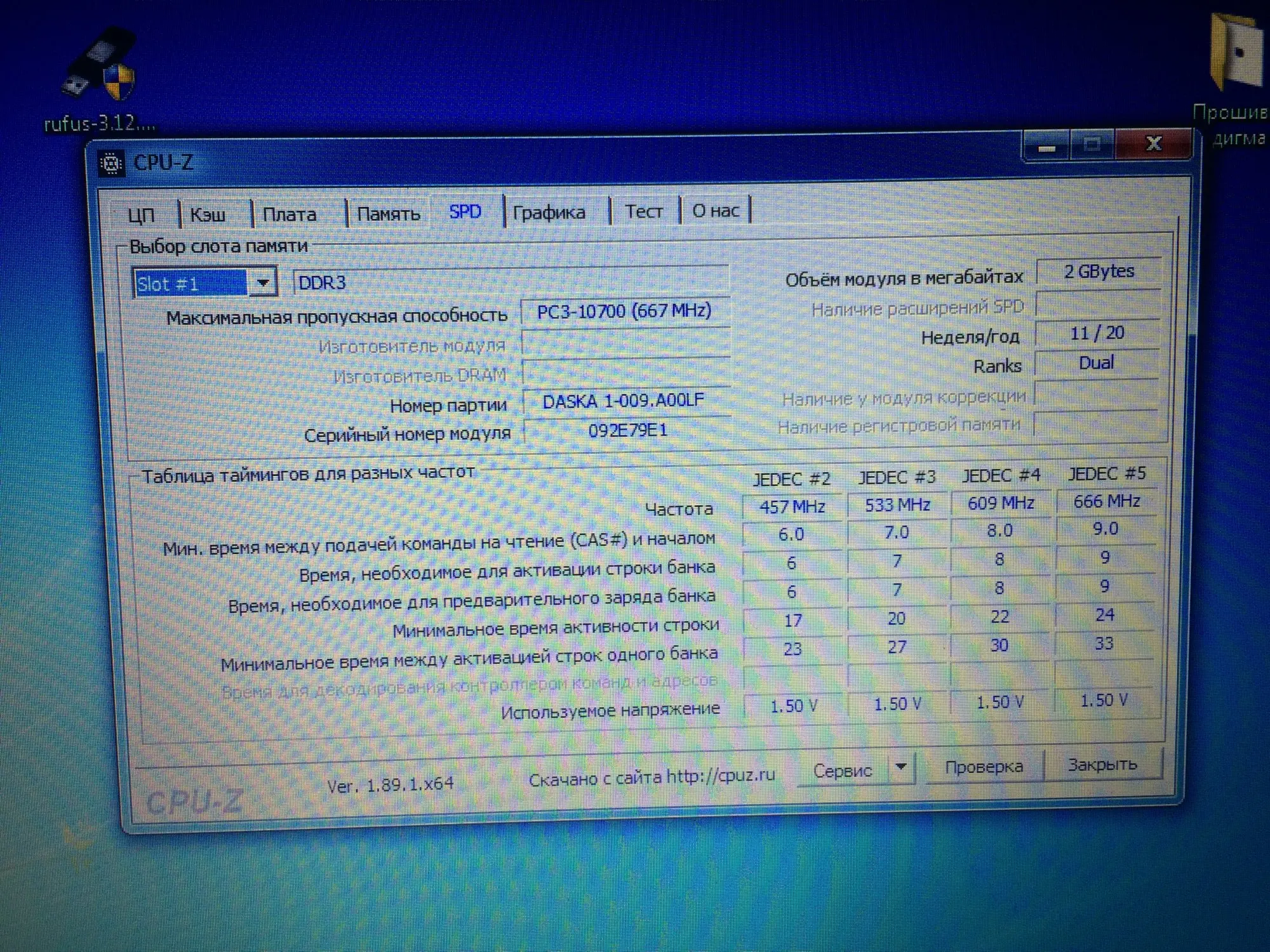 Оперативка пришла быстро, несмотря на новогодние праздники, плашка рабочая(брал для ноута hp g62), в cpu-z производитель определяется как kingston