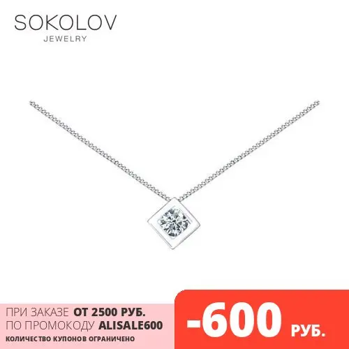 Колье SOKOLOV из серебра с фианитом, Серебро, 925, Оригинальная про...