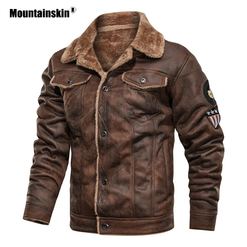 Мужская байкерская куртка Mountainskin, замшевая ветрозащитная куртка с меховым отворотом, на флисе, теплая, зимняя, SA883
