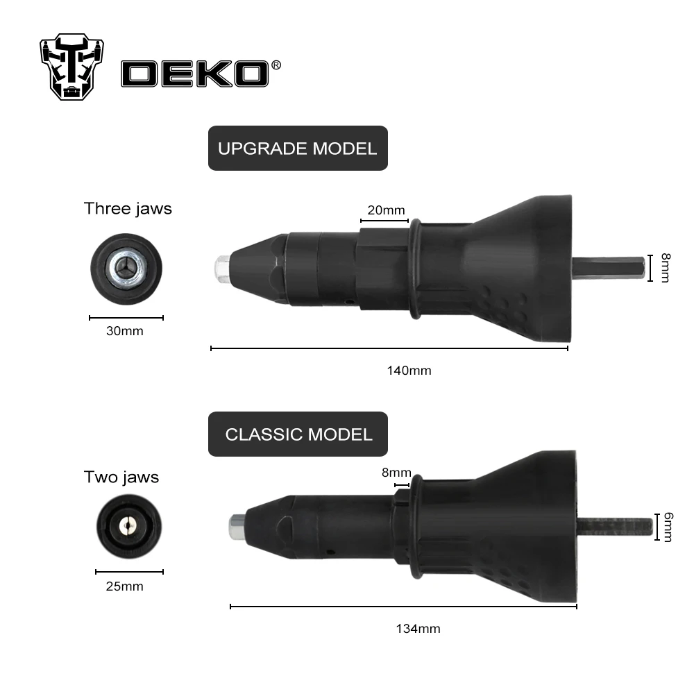 DEKO электрический пистолет с заклепками, инструмент для заклепок, беспроводной адаптер для заклепок, инструмент для заклепок, адаптер для дрели