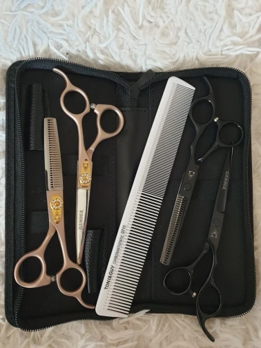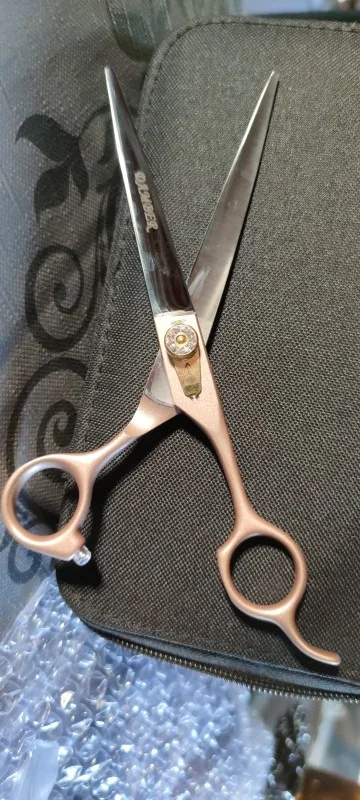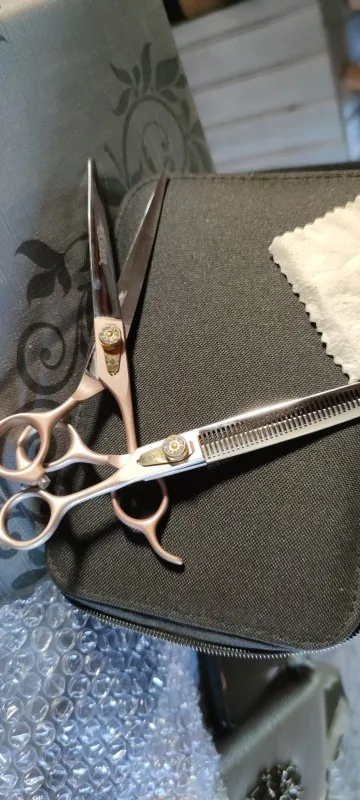 Ножницы получила с симпатичным чехлом.Внешний вид ножниц очень симпатичные, лучше чем на фото. Ножнички и обычные, и филлировочные острые. Как проявят себя в работе позже отпишусь. Продавцу спасибо))