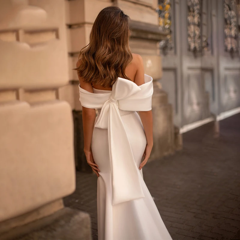 LORIE 2020 весенние атласные свадебные платья-русалки с открытыми плечами пляжные свадебные вечерние платья элегантные свадебные платья со шлейфом