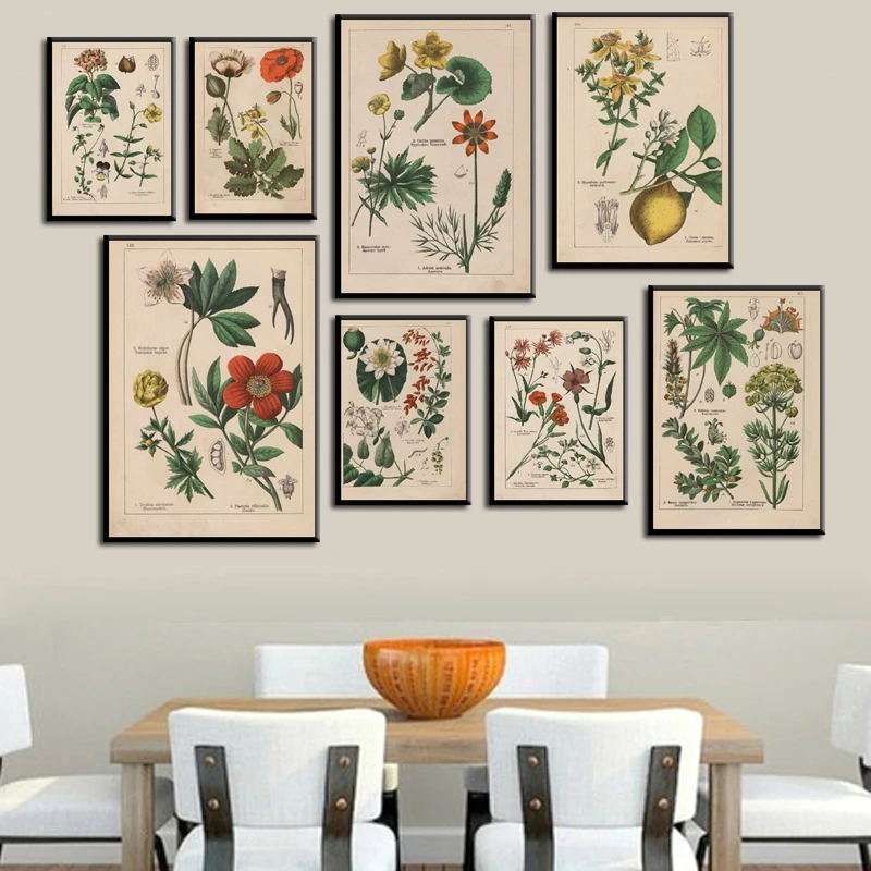 Винтажные постеры с растительными травами и принтами, домашний Настенный декор, античная растительная ботаника, настенная Картина на холсте, картины для кухни