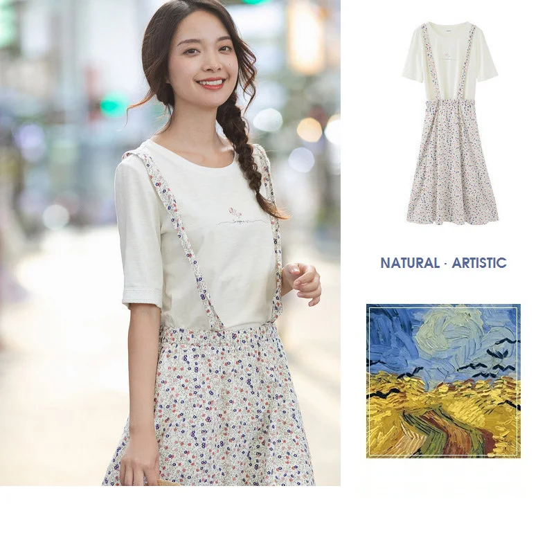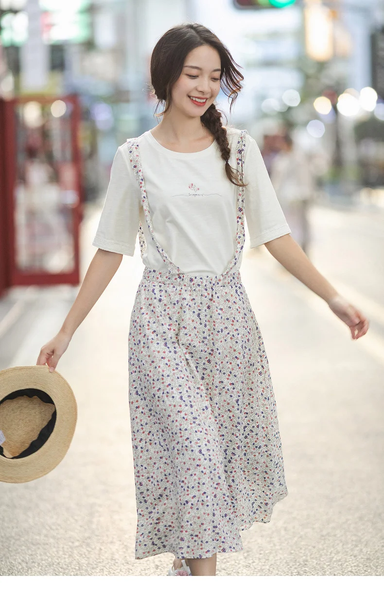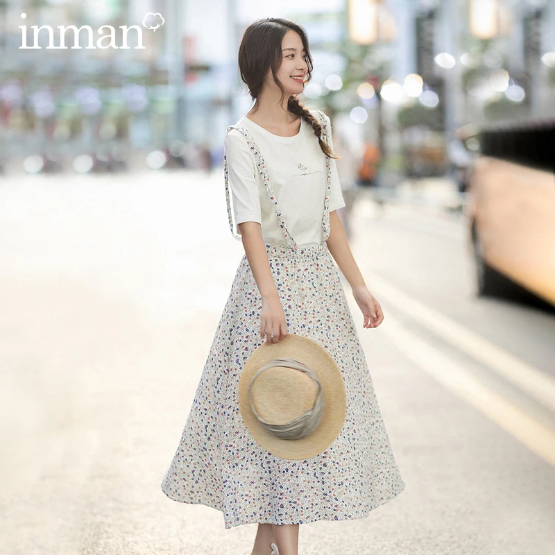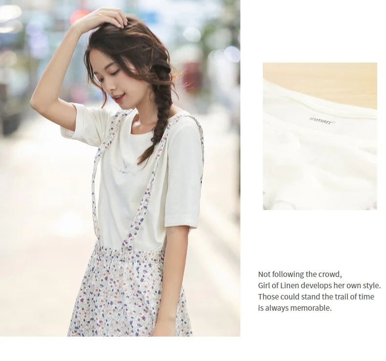 INMANвесенне-осенняя однотонная и свежая Футболка с принтом; Милый милый костюм из двух предметов на подтяжках