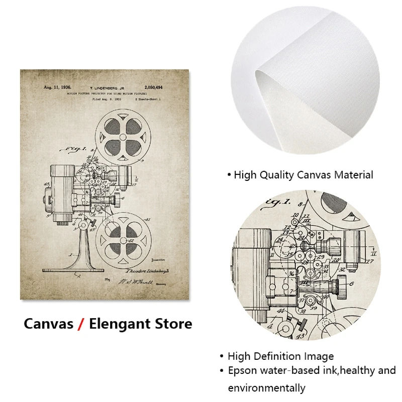 Movie Lover Gift Cinema Patent Design Art Painting Picture Home Decor