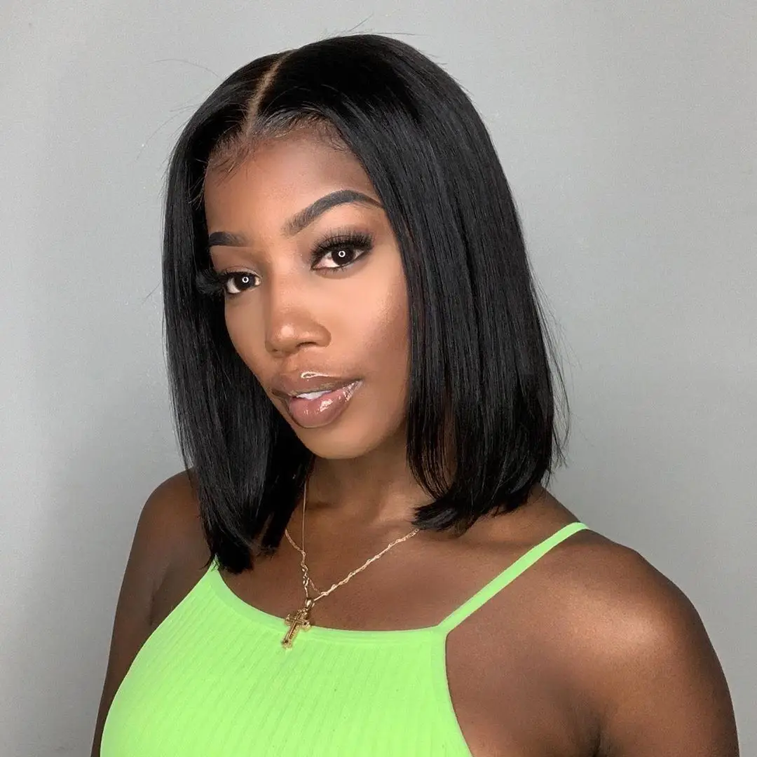 Прозрачный 360 Синтетические волосы на кружеве al короткие парики из человеческих волос прямые боб 13x4 Синтетические волосы на кружеве парик для черных Для женщин Реми человеческие Nabeauty