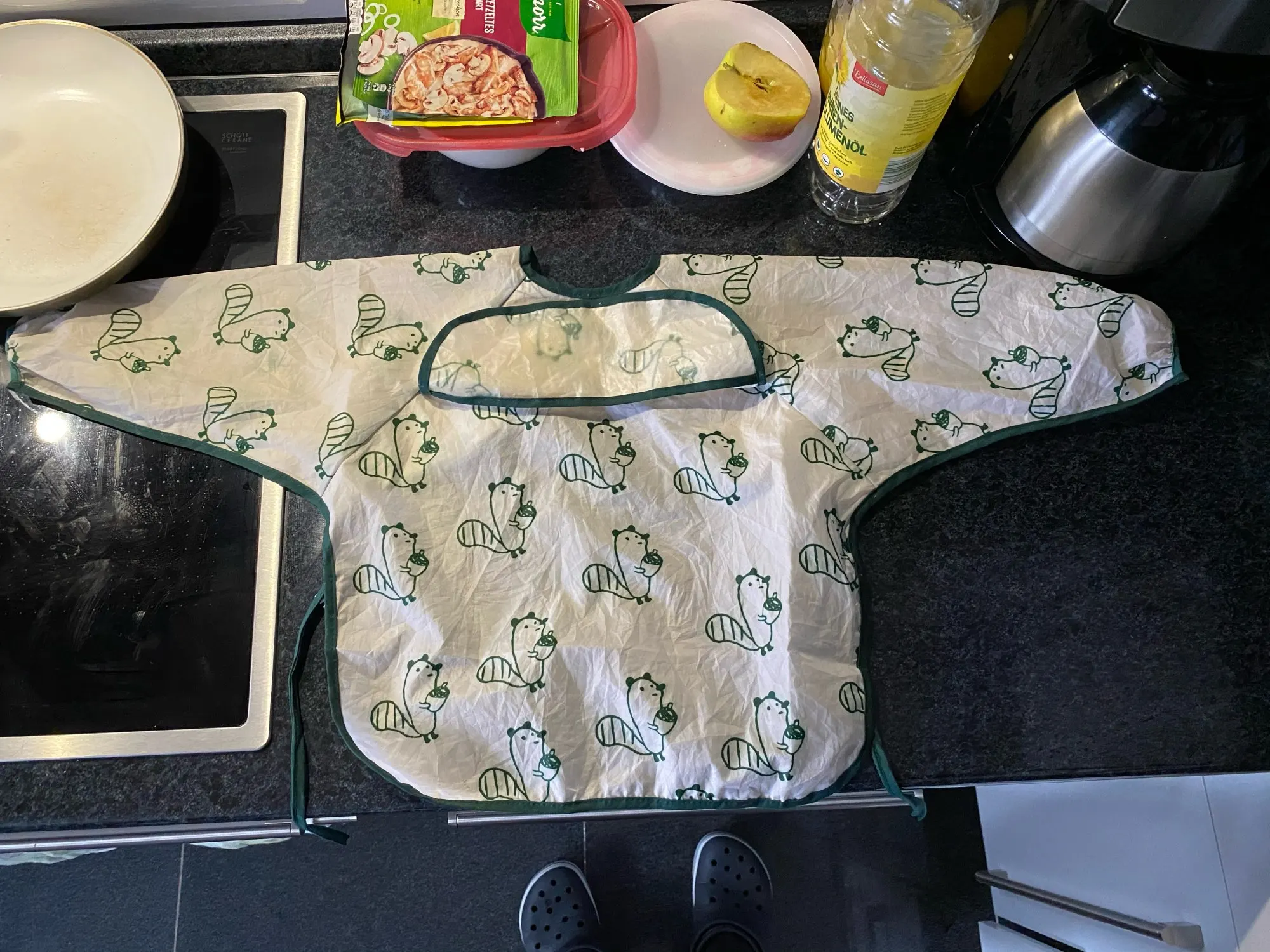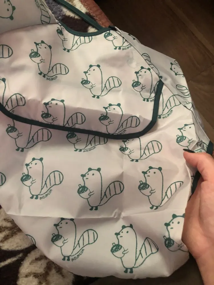 Очень доволен покупкой! Желаю, чтобы мы заказали два, потому что маленький получает его грязным после каждого приема пищи, и это занимает немного времени, чтобы высохнуть после стирки.
