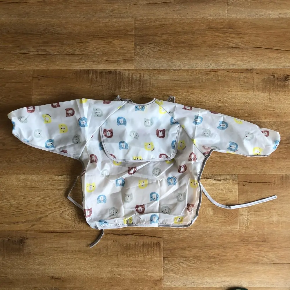 Нагрудники для младенцев, милые, красочные, Мультяшные, водонепроницаемые, детские, с рисунком еды, с длинным рукавом, нагрудник для самостоятельного кормления
