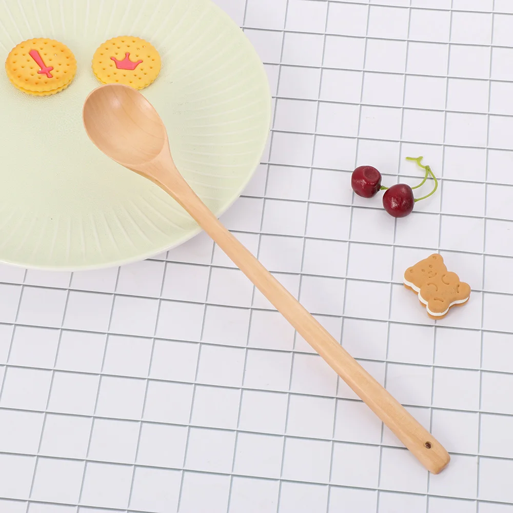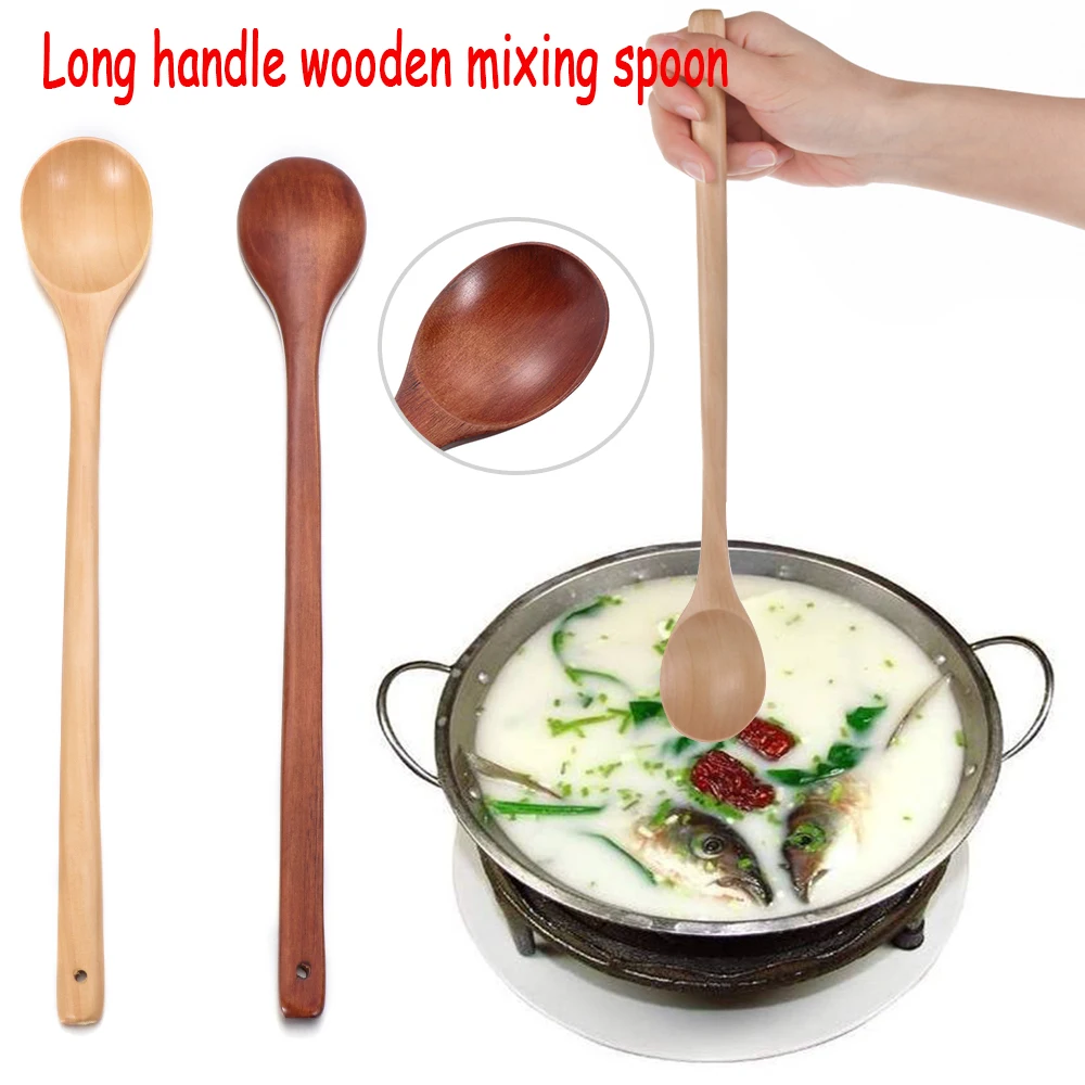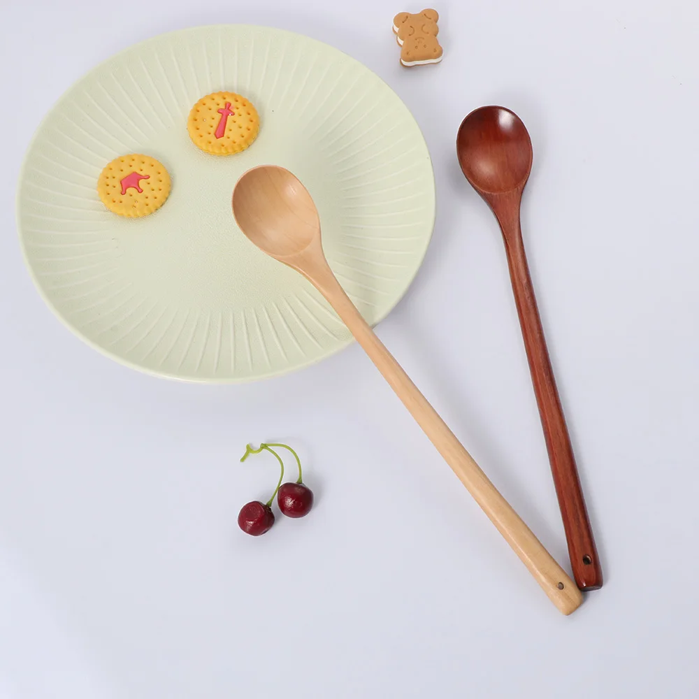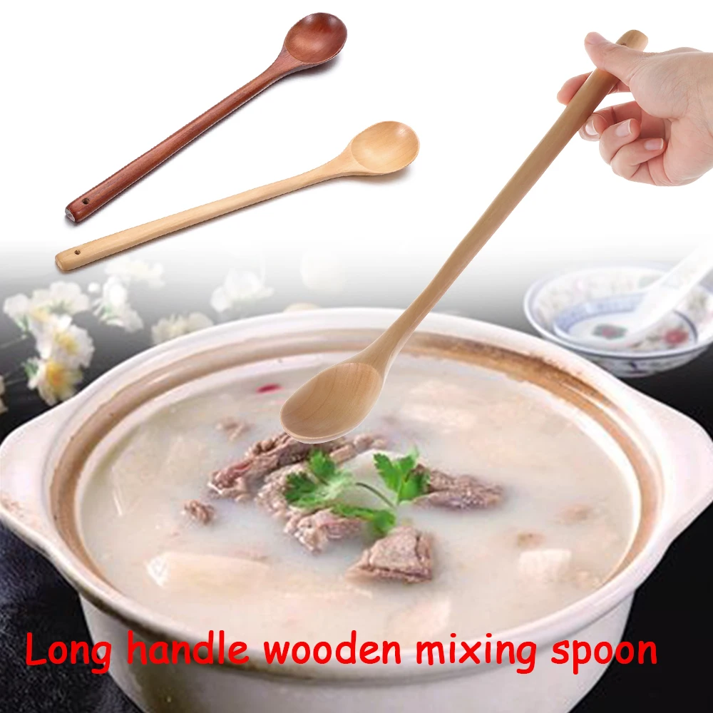 Ложка Из Длинная Деревянная Ручка натурального массива дерева в японском стиле, большая ложка для супа, чайная ложка, столовая посуда, ложка для перемешивания каши, десерта