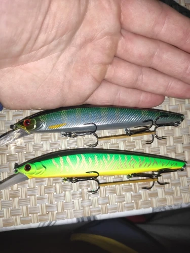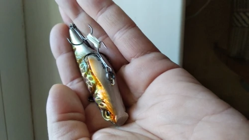 Покраска шикарная. Вес соответствует заявленному. Пожалуй тонковаты тройники и огрузка смещена в хвост, буду смотреть в воде, возможно придётся подгрузить переднюю часть.