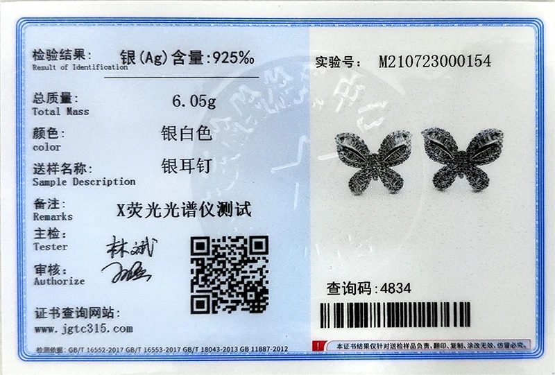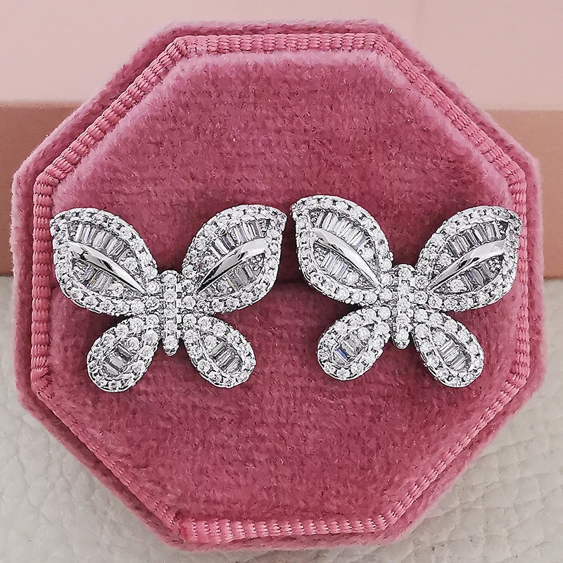 Женские Серебристые серьги-гвоздики, с бабочками и камнем из циркон...