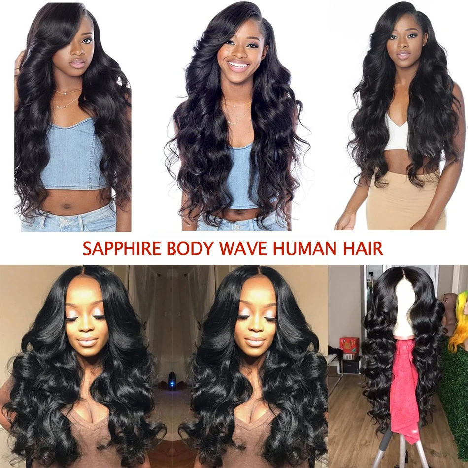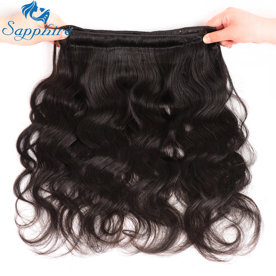 Сапфировые волосы перуанские человеческие волнистые пучки волос 100% Реми наращивание волос естественный цвет 1 3 4 пучка толстые пряди волос