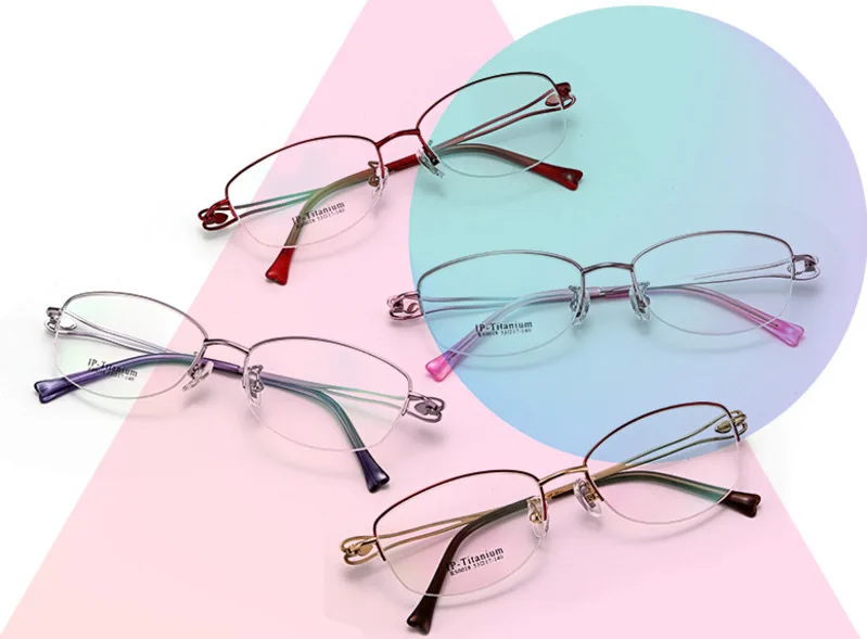 Очки женские металлические в полуоправе из чистого титана, с прозрачными линзами