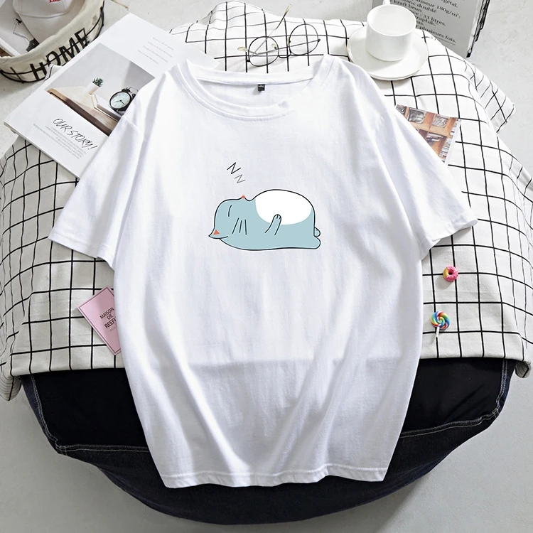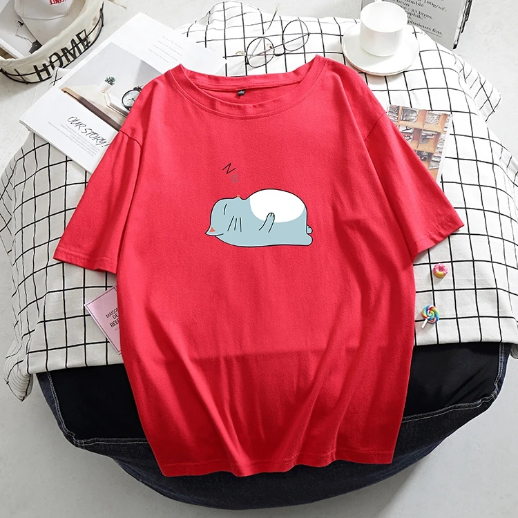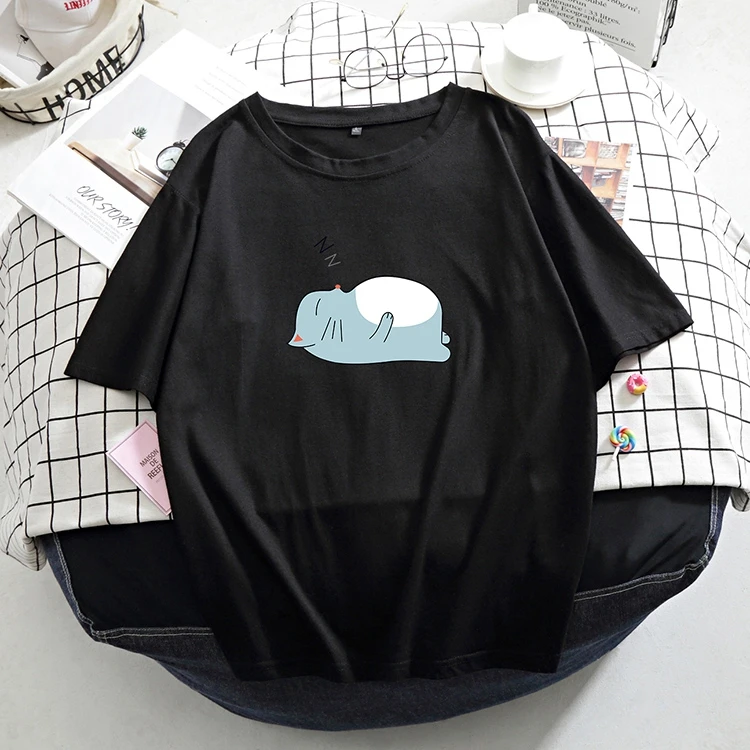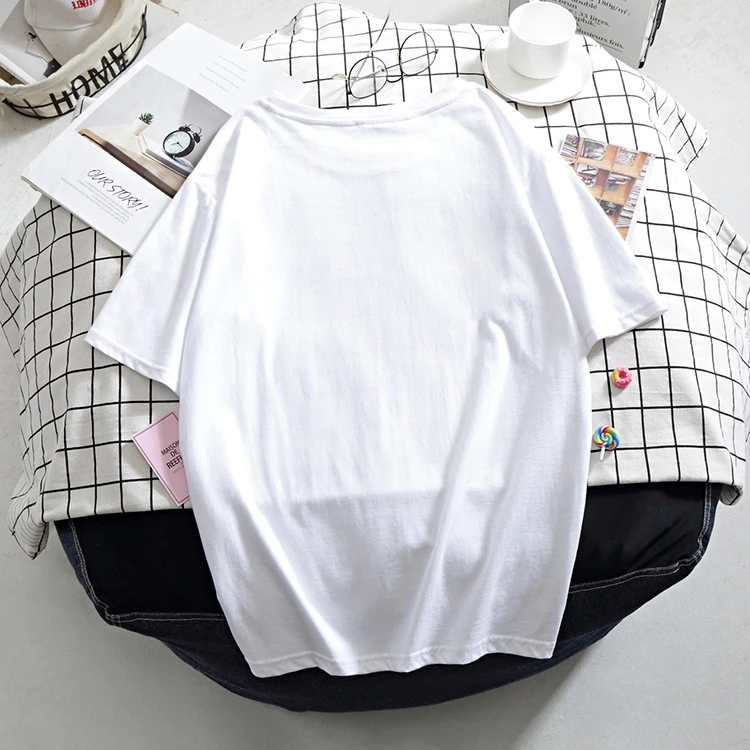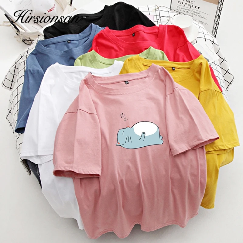 Футболка Hirsionsan женская с милым мультяшным рисунком, хлопковая рубашка с круглым вырезом, Свободный Топ в Корейском стиле, белый черный, размера плюс, лето 2020