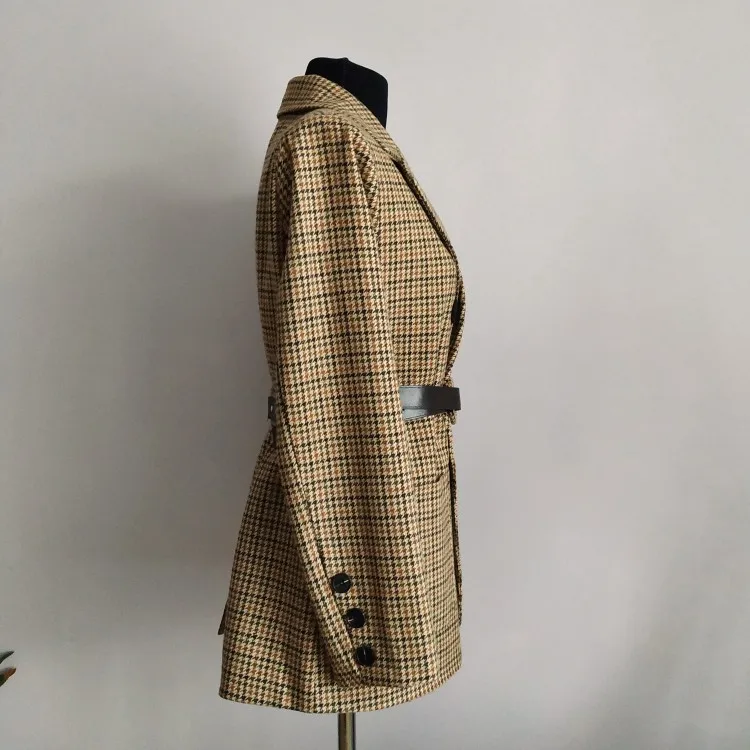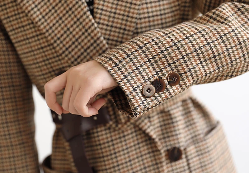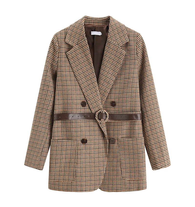 Пиджак BGTEEVER зимний, плотный, в клетку, с поясом и длинным рукавом, 2021