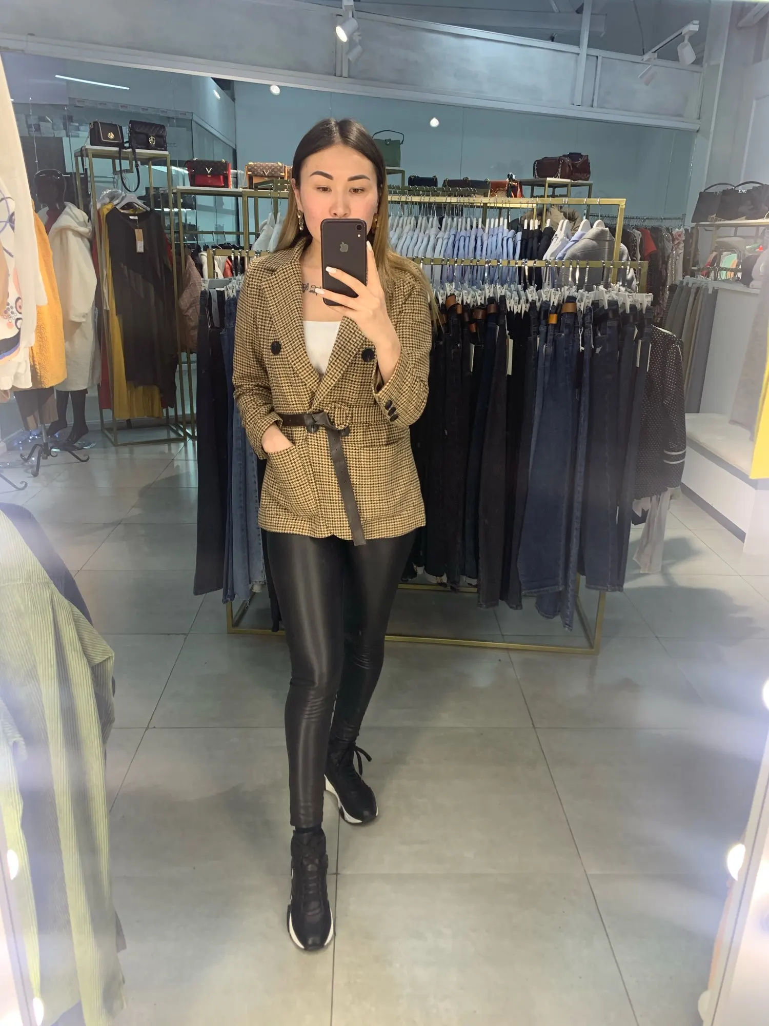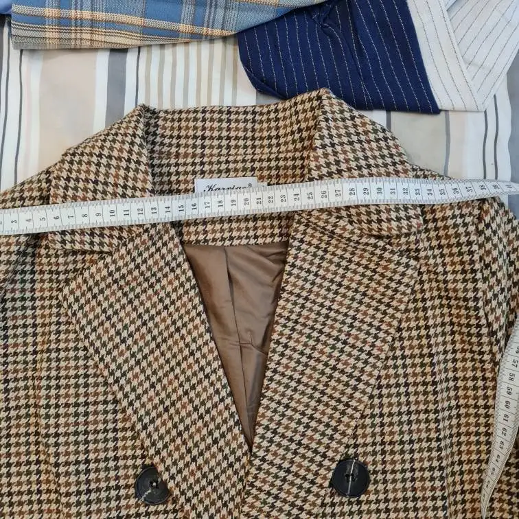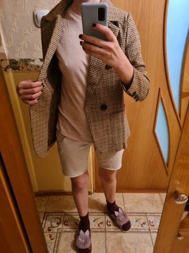 Шикарный жакет. Заказала на свой страх и риск , но зря боялась. Ткань качественая, отпарилась легко, швы ровные, ниточки не торчат. Крой прямой, поэтому пояс очень кстати. На параметры 96/78/96 вес 64 рост 164 заказала xl. Жакет сел, как влитой, немного оверсайз, можно пододеть свитер. К покупке оооочеь рекомендую, спасибо огромное продавцу. Я очень довооьна.