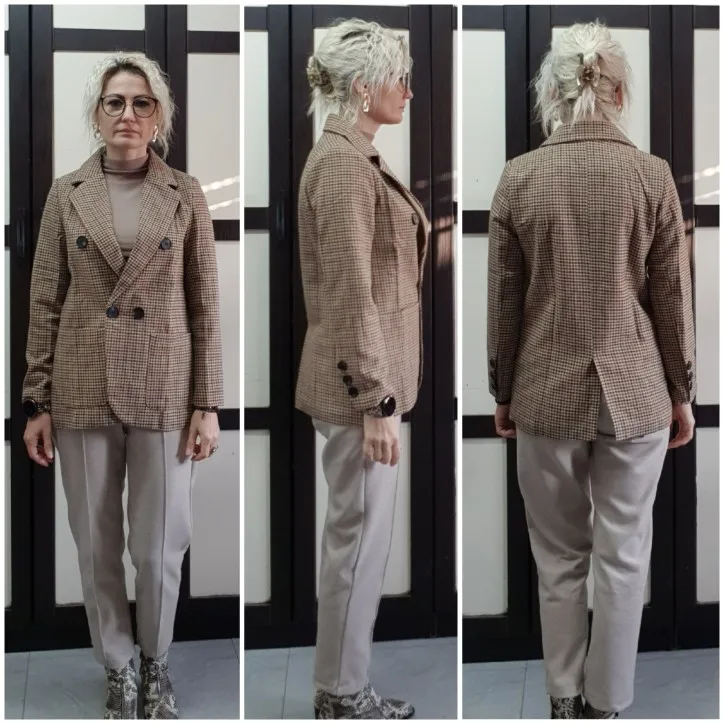 Классный пиджак. За свои деньги хорошее качество. Пошито ровно, ритки нигде не торчат. На российский 46 размер заказана пр отзывам размер L, подошло идеально. Пришло достаточно быстро, меньше месяца, несмотря на новогодние праздники. Покупкой довольна