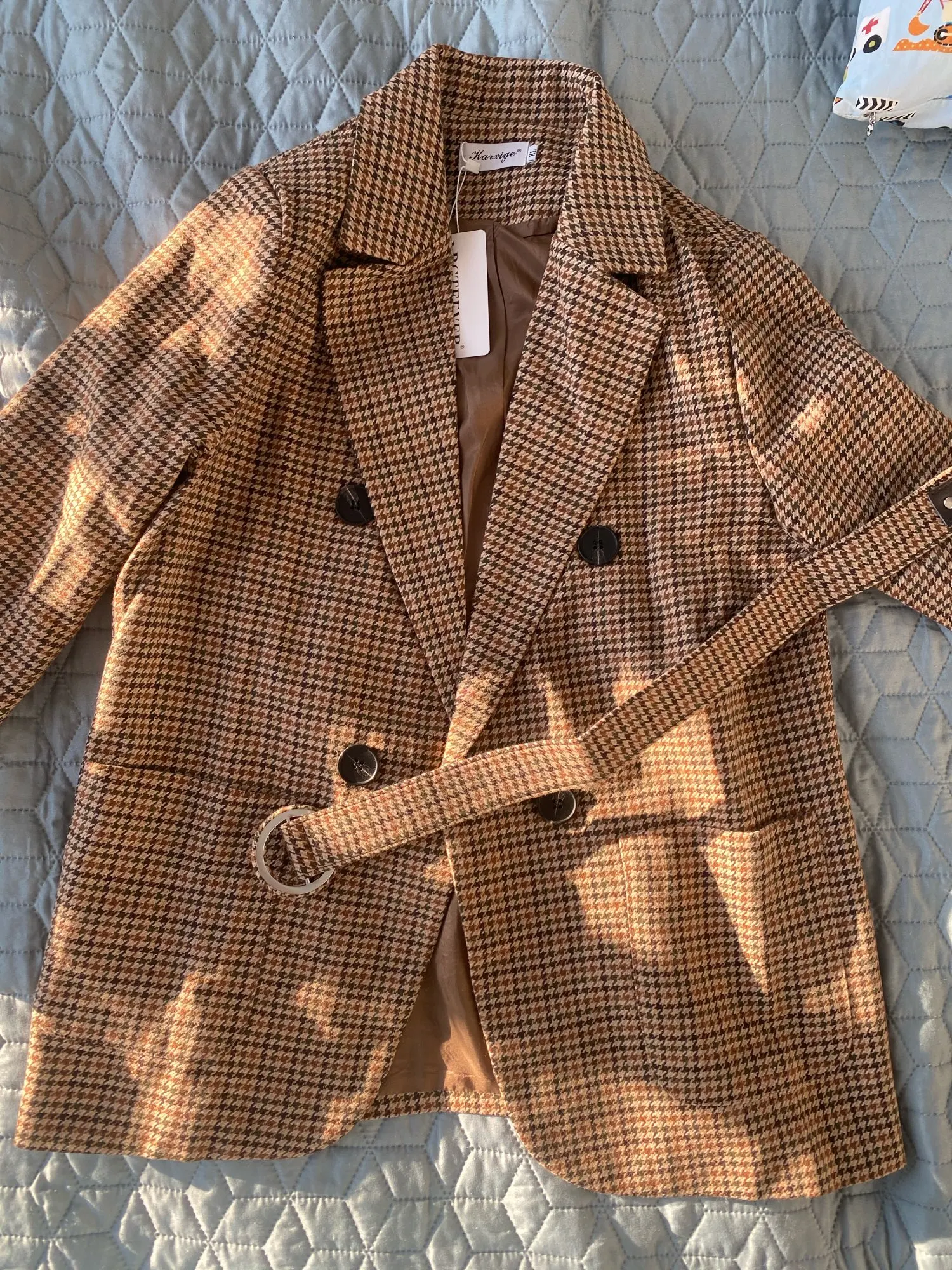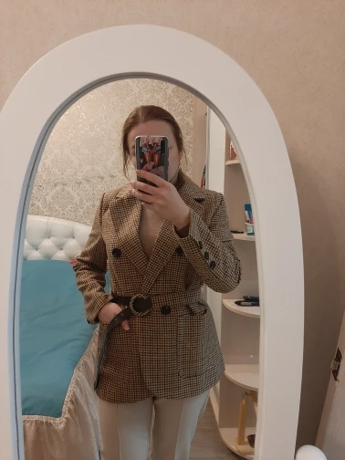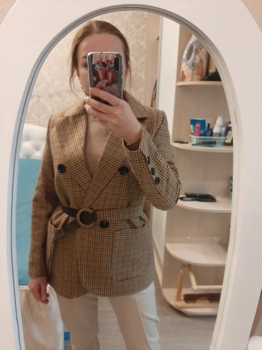 Очень классный пиджак ! Заказала «s» на свой размер «xs/s». Очень здорово смотрится, выглядит модно, качество хорошее. Заказала 13.12, пришёл сегодня - 22.12. Меня устраивает и длина, и вырез, и сел хорошо. Ещё и ремень в комплекте. Спасибо большое продавцу и за хороший товар, и за быструю доставку.