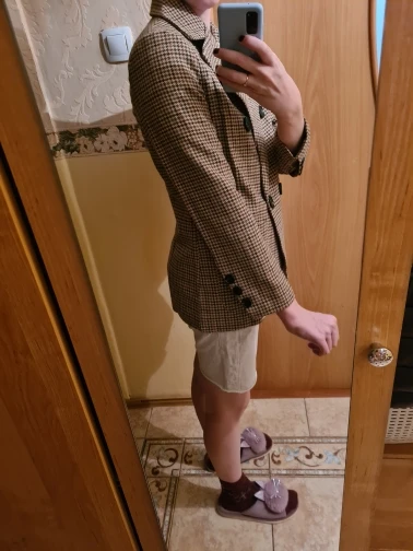 Хороший пиджак, я даже не ожидала. Есть небольшие недочёты в виде махрящихся ниток вокруг петли для пуговиц и длина рукавов прям впритык. Но в целом довольна. С продавцом не общалась