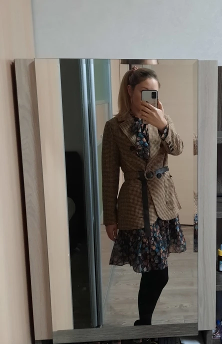 Пиджак очень понравился. На 95-70-99 размер L в самый раз. Спасибо продавцу за помощь с выбором размера. Ремень выглядит достаточно дёшево, но и без него пиджак смотрится очень хорошо. Я довольна покупкой.
