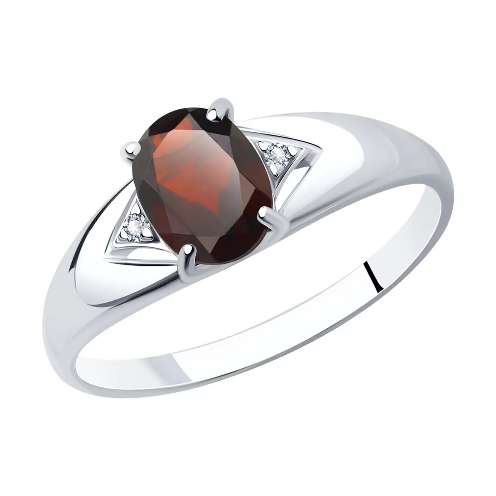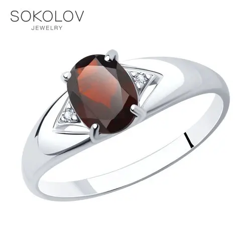 Кольцо SOKOLOV из серебра с гранатом и фианитами, Серебро, 925, Жен...