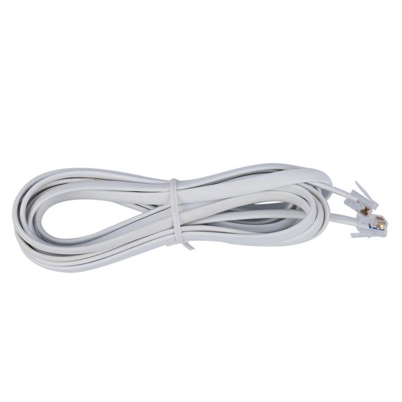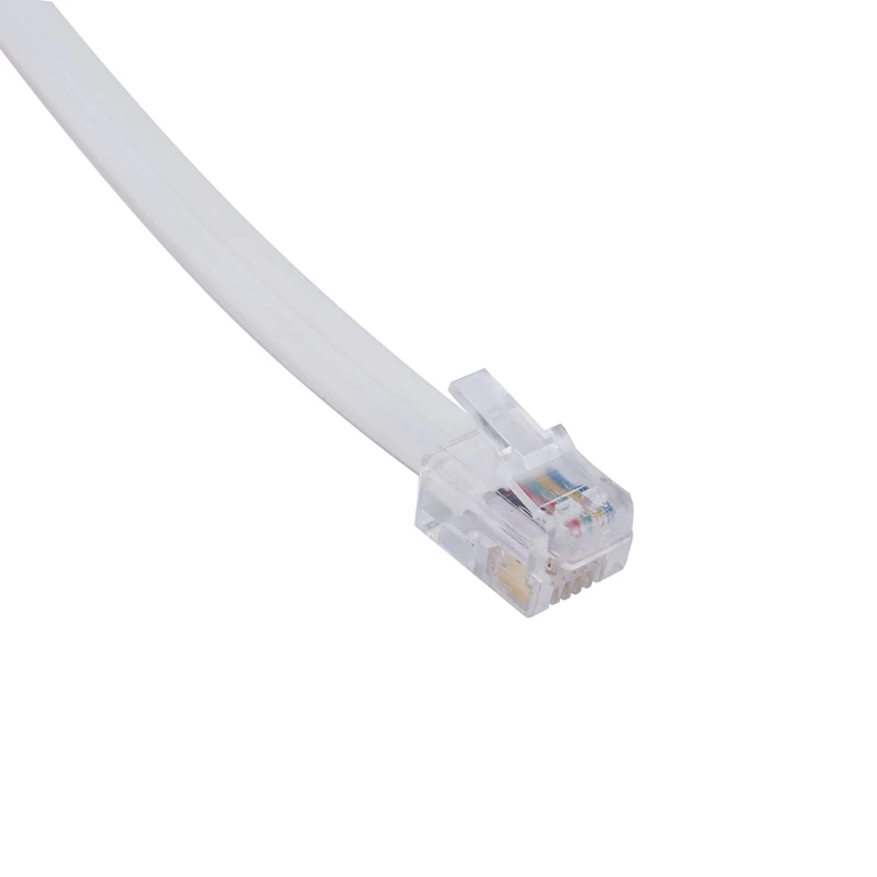 Телефонный кабель с двойными концами RJ11 6P6C, изготовлен из высококачественного пластика белого цвета.