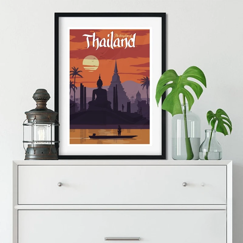 Винтажный дорожный постер из Тайланда, Настенный декор, Таиланд, дорожный холст, живопись, таиландский Будда, художественный принт, Таиланд, подарок