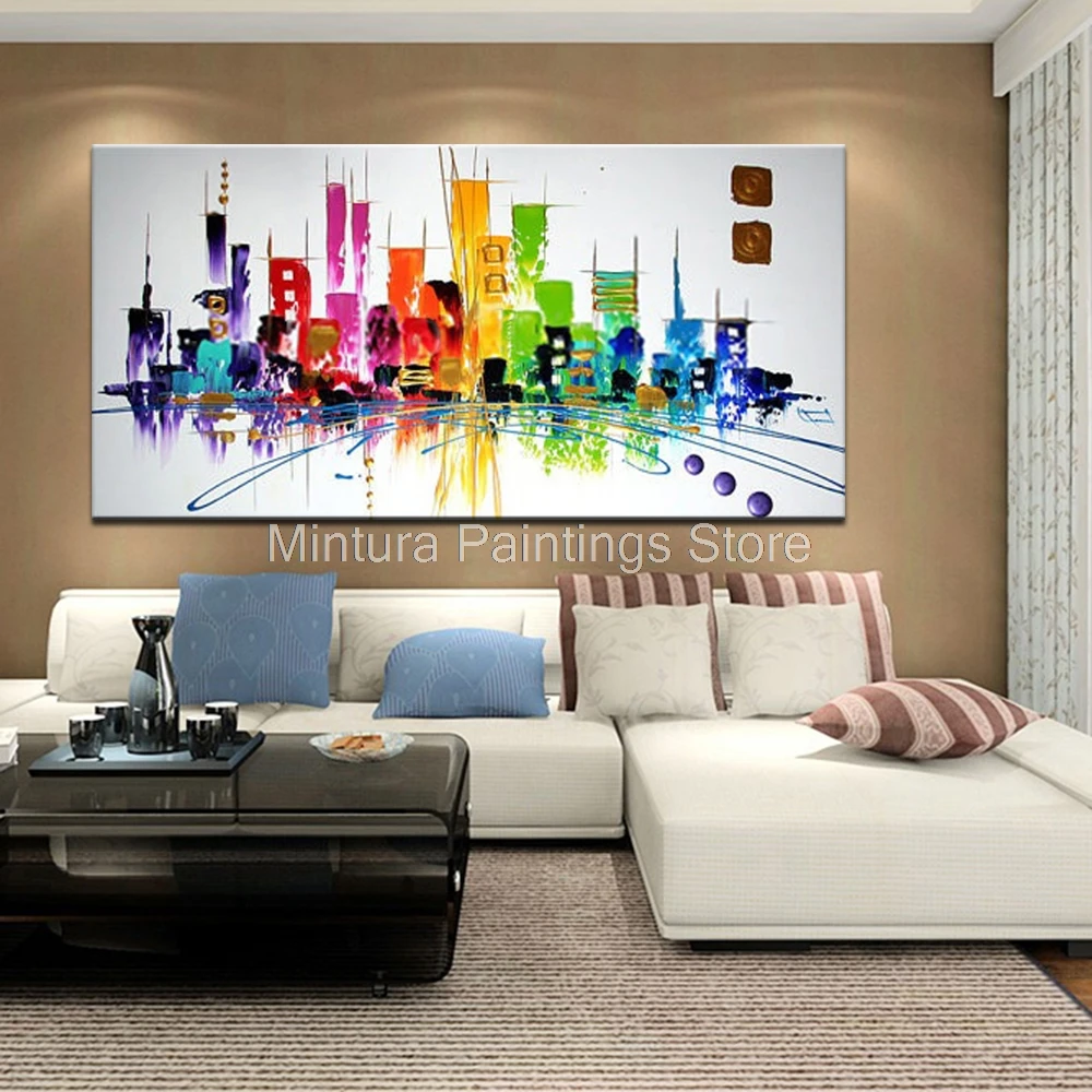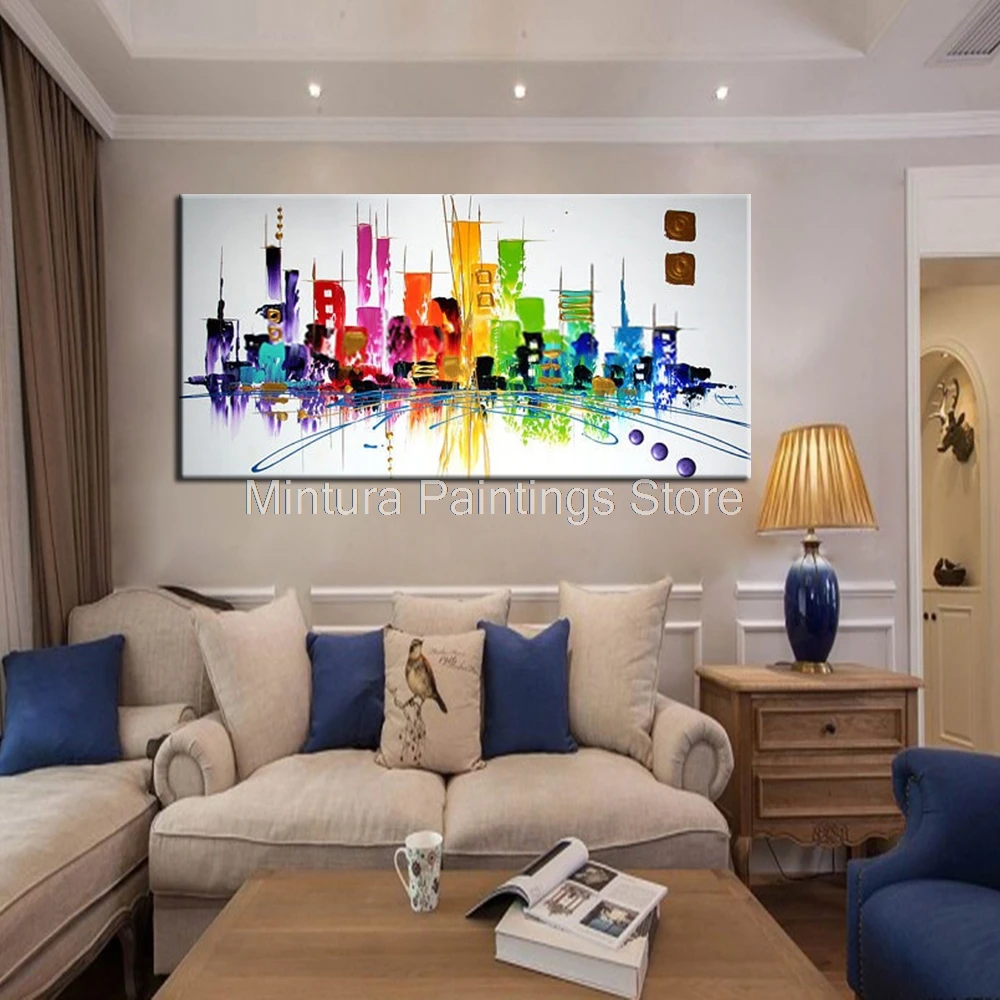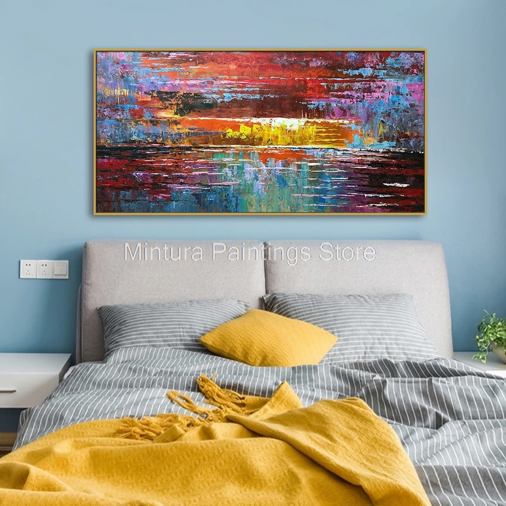 Картина на стену Mintura для гостиной, картина маслом, ручная роспись, абстрактный вид на красочное озеро, домашний декор, настенная живопись, без рамки