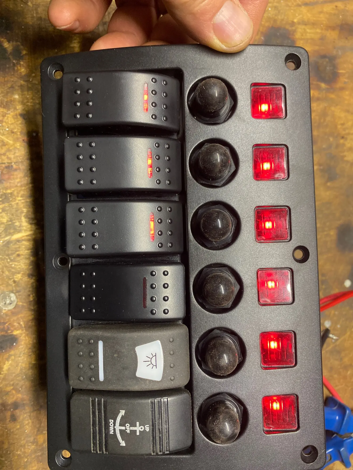 В принципе неплохой товар, подключил, все работает, но ожидал, что будет лучшего качества, при этом за такие деньги терпимо, радует то, что переключатели можно снять и заменить на другие. В описании нет информации , что переключатели можно заменить, это большой плюс. Без проблем заменяются на переключатели с размером 50х45х25 с любыми функциями(on/off/on, on/off и т.д.) т.е можно поколхрзить. Размер великоват, но вытулить в лодку возможно. Брал эту модель из-за наличия автоматов предохранителей, чтобы не добавлять дополнительный блок предохранителей. Товар пришёл достаточно быстро, в оговорённый срок. Претензий к продавцу «0». 4 звёзды только за качество переключателей! С продавцом не общался поэтому 4