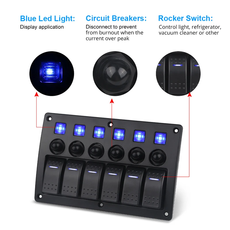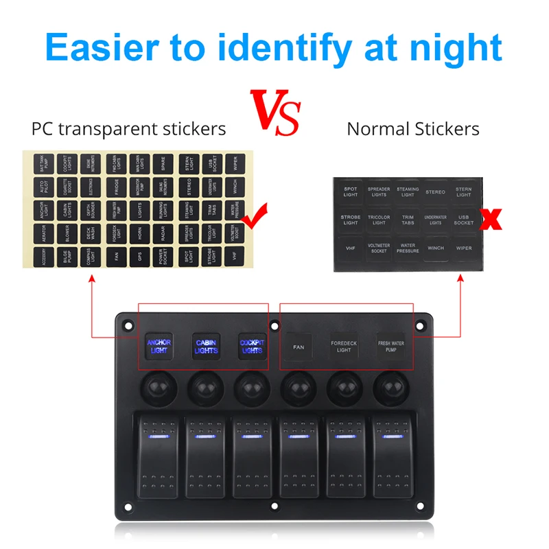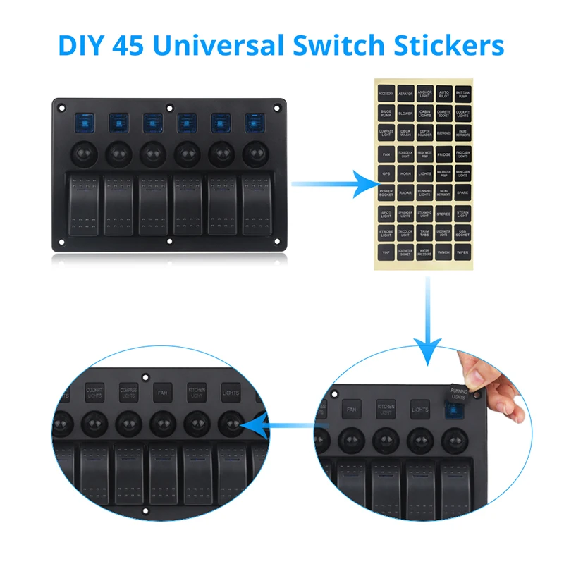 Автомобильная лодка кулисный переключатель панель 12 в морской 6 банды Автомобиль Грузовик Авто панель Переключатель водонепроницаемый с наклейками