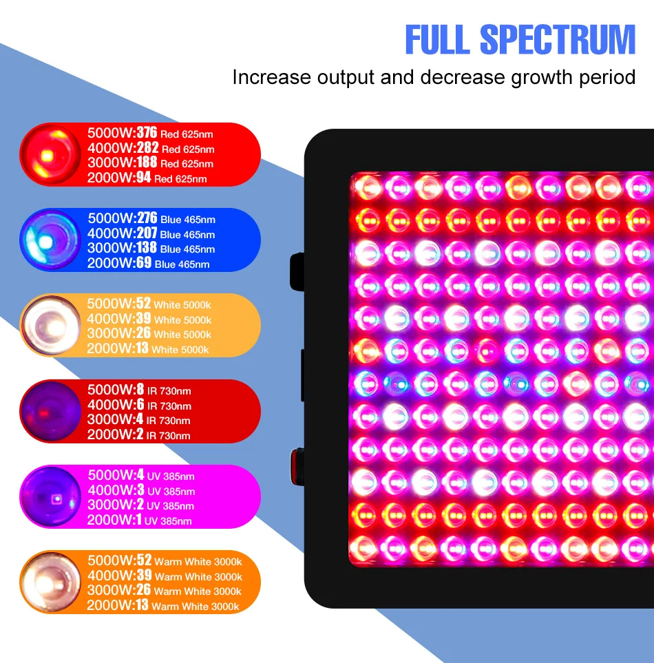 Светодиодная фитосветильник ПА полного спектра для выращивания растений, 220 В, 2000 Вт, 3000 Вт, 4000 Вт