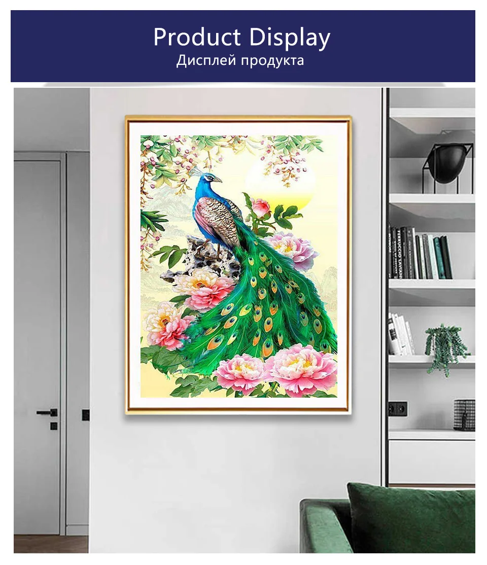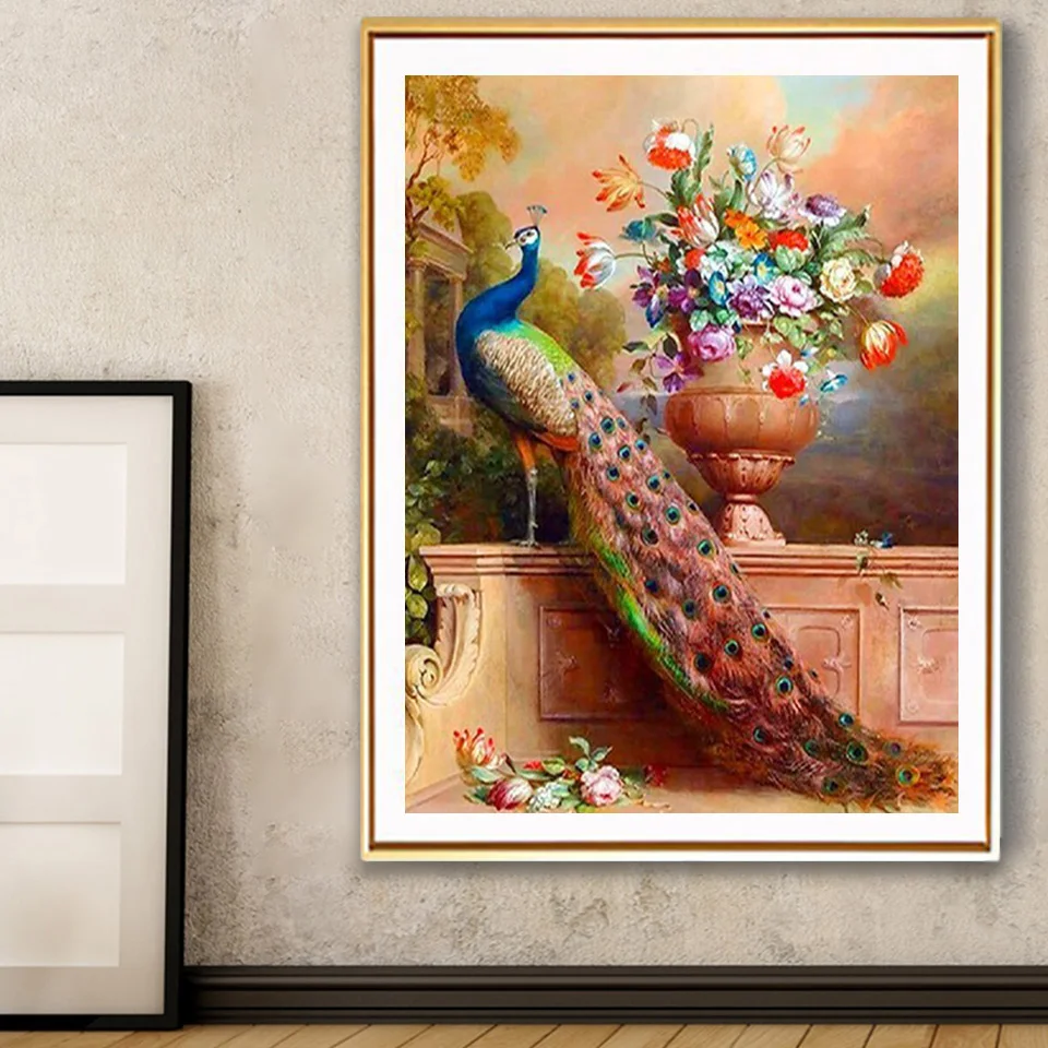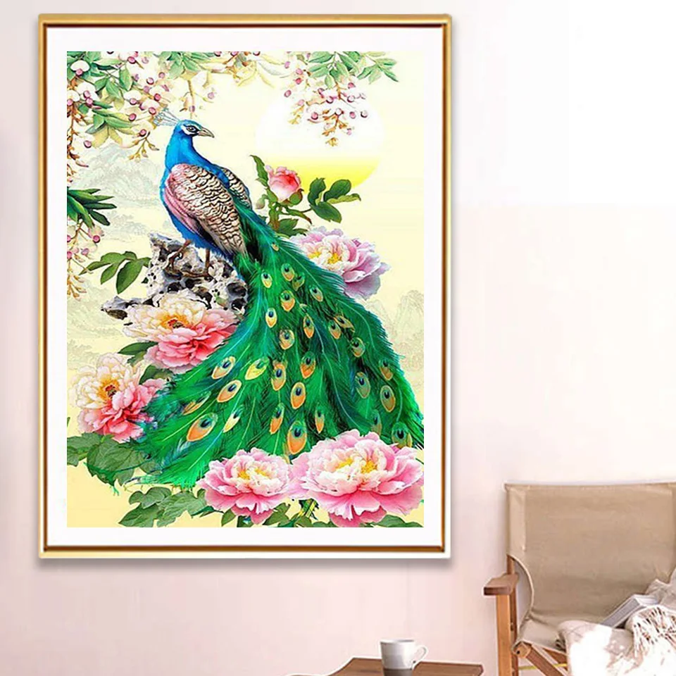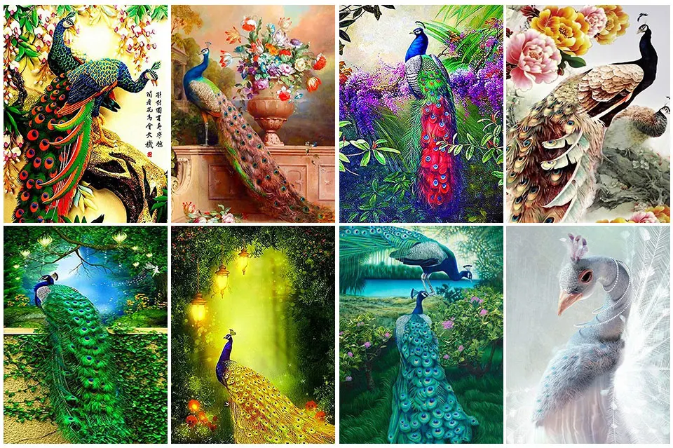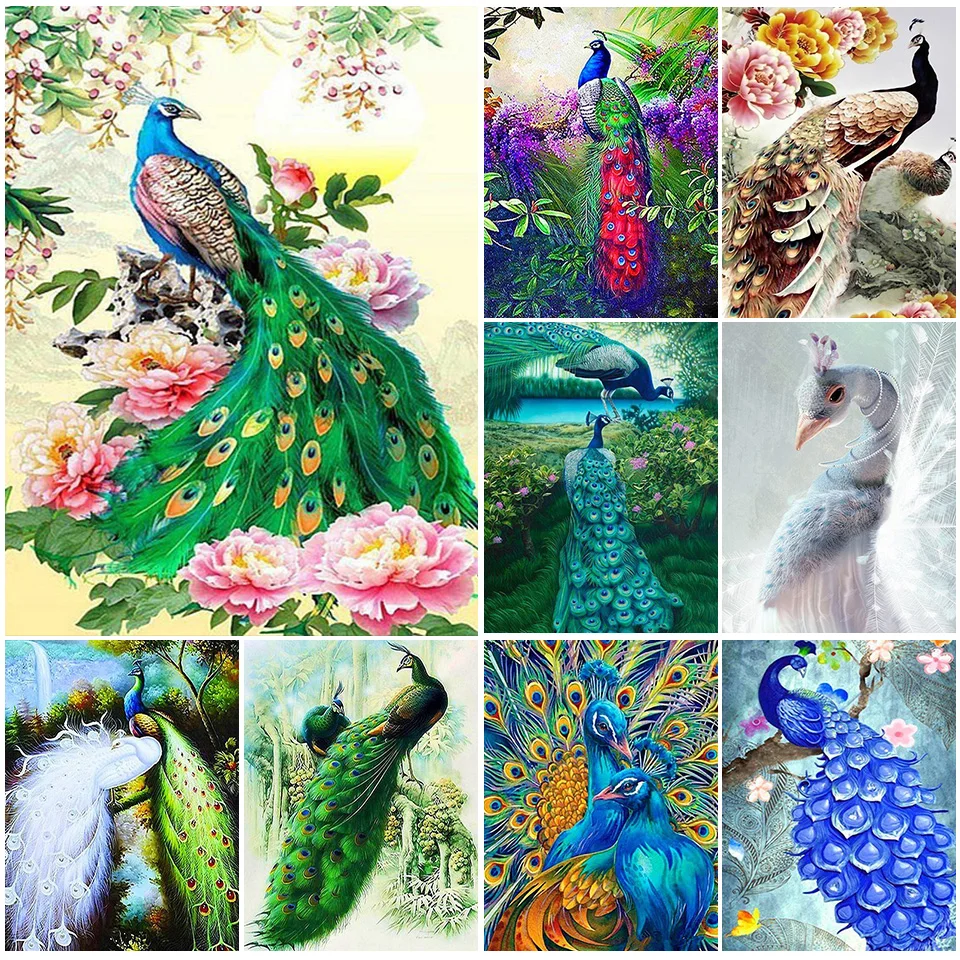 5D алмазная живопись сделай сам, Набор для вышивки крестиком с животными, полная квадратная круглая Алмазная вышивка, мозаика с павлином, картина стразы, Декор