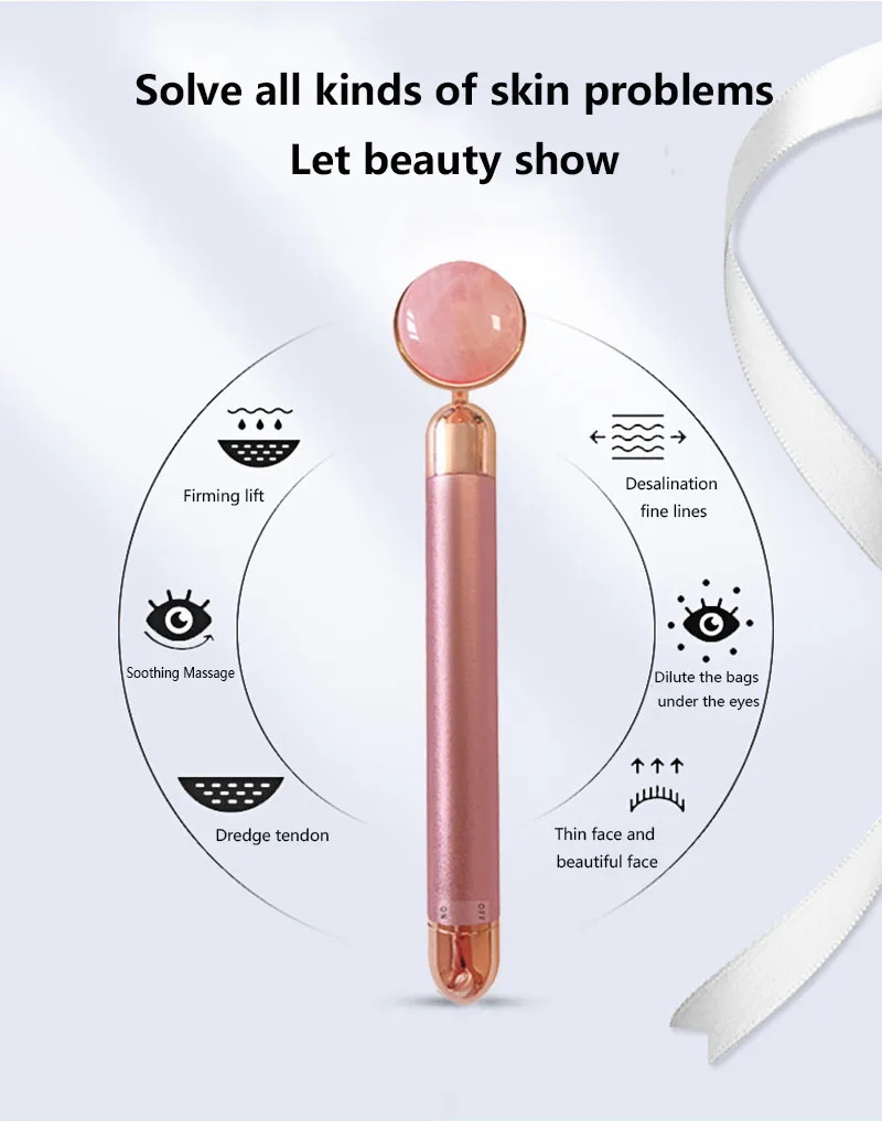 Золотистый вибромассажер для лица, электрический массажер с нефритовой головкой, против морщин, подтягивающий кожу, розовый КВАРЦЕВЫЙ массажер для лица