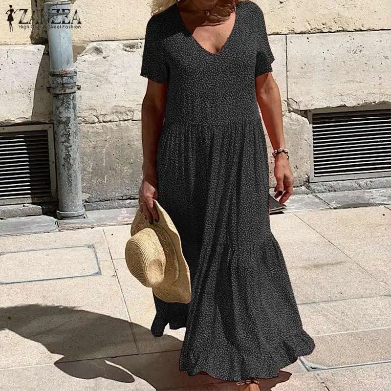 Женский летний сарафан ZANZEA 2021, модное Повседневное платье с ру...