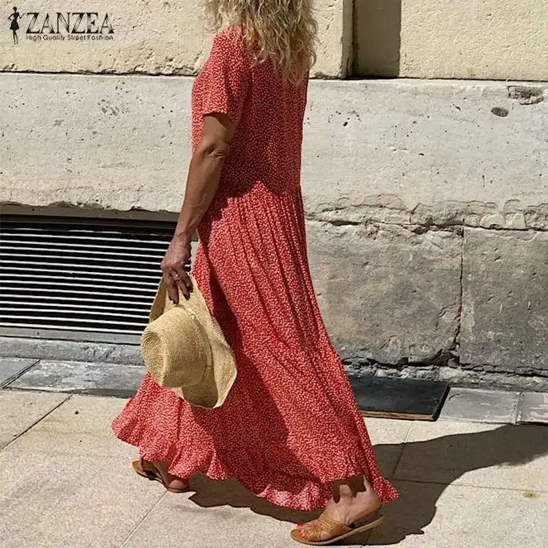 Весенний женский сарафан, богемное цветочное длинное платье ZANZEA ...
