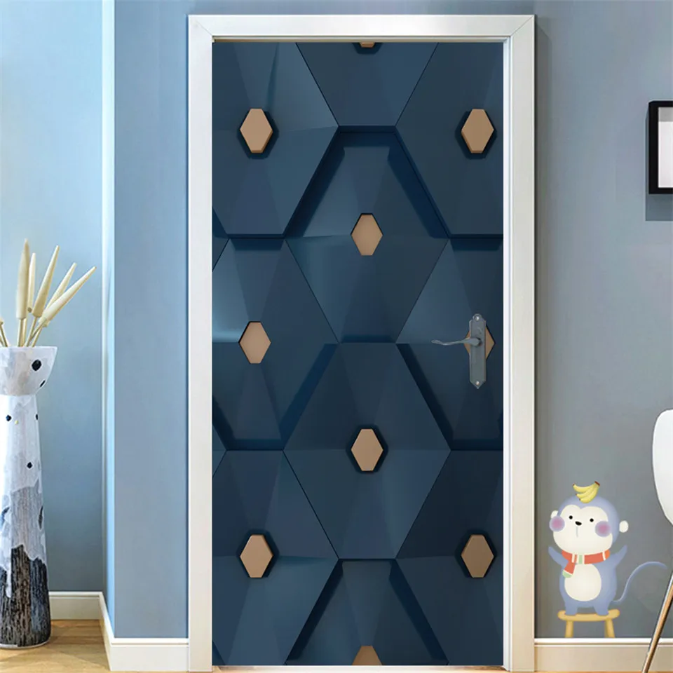 2 шт.компл. черная Геометрическая дверная наклейка, самоклеящиеся водонепроницаемые съемные обои, виниловые настенные наклейки, постеры, домашний декор, deurпостер