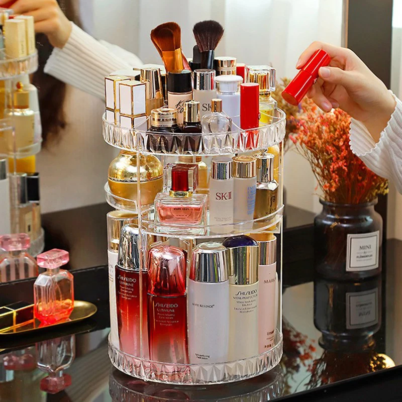 Вращающийся на 360 градусов макияж менеджер: вращающийся дизайн позволяет легко найти нужную вам косметику, которая может сэкономить 70% рабочего пространства; Продукты по уходу за кожей, макияж, И все духи хранятся;