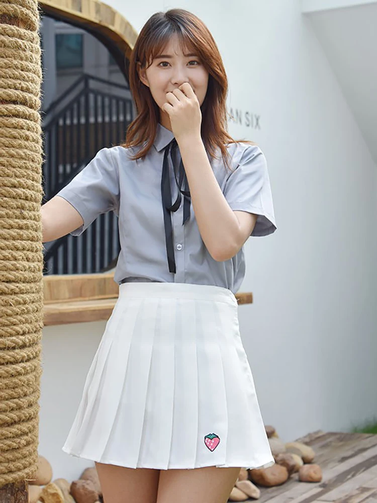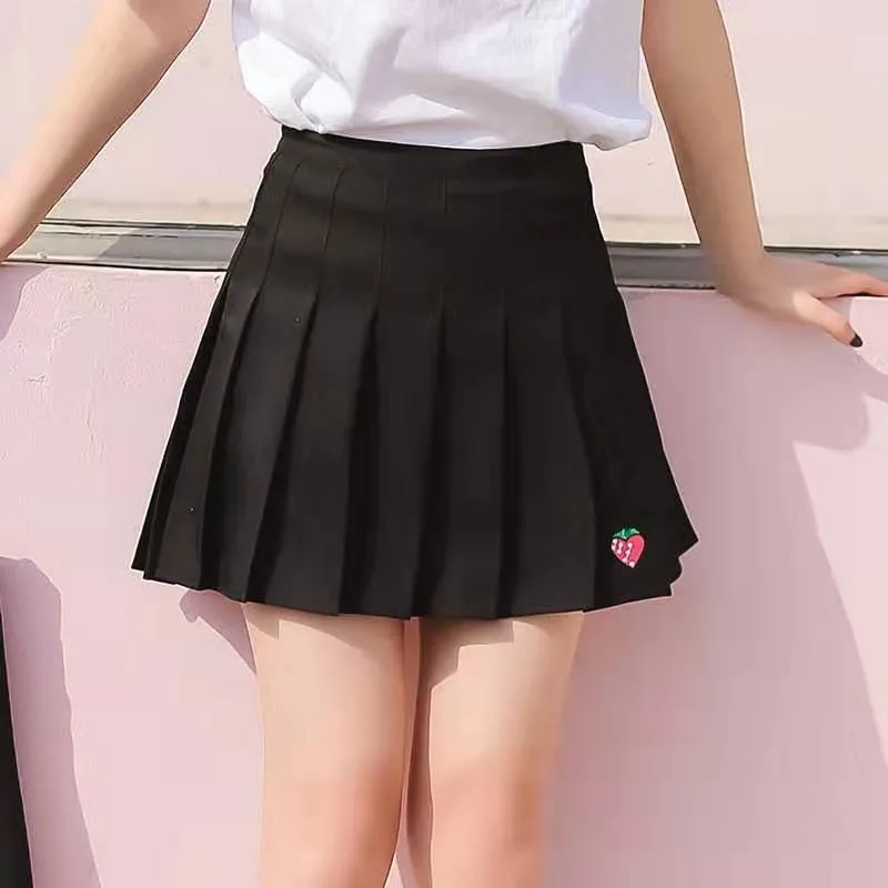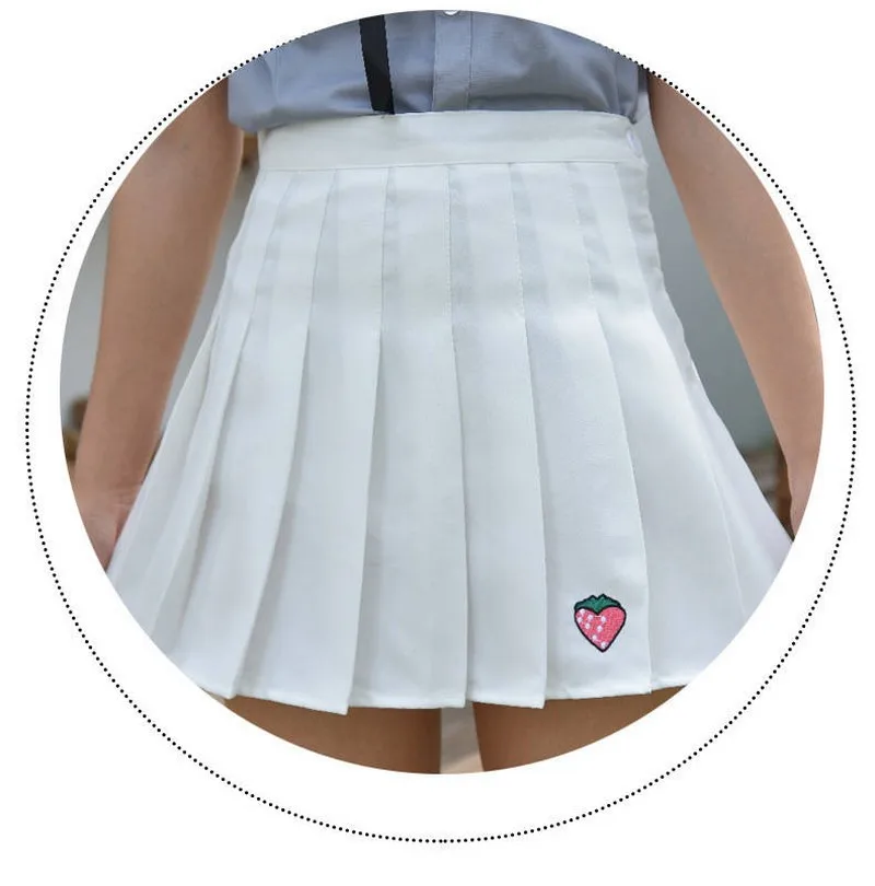 Женские джинсовые мини-юбки Harajuku с высокой талией, милая плиссированная японская школьная форма с вышивкой клубники и фруктов, 2022