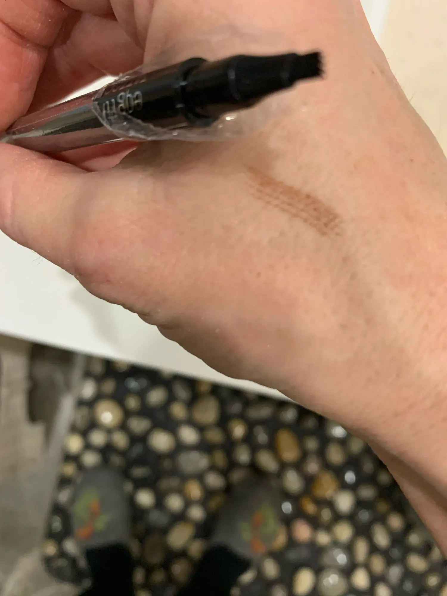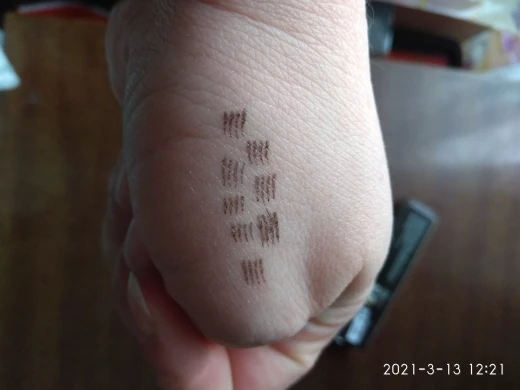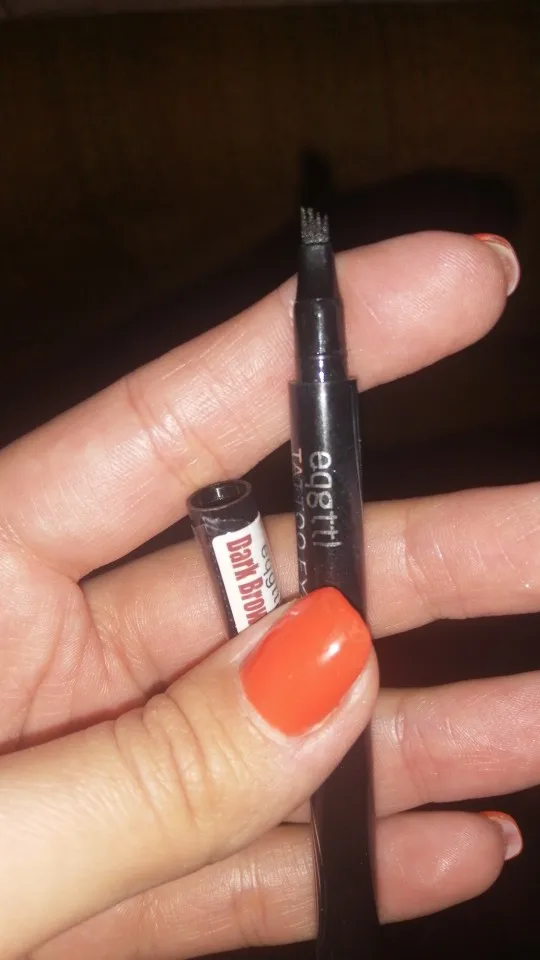 Заказ прибыл быстро1-2нед.На руке водостойкая ,2 -ой день держится, а на бровьях плохо рисуется и если несколько раз в одном месте проведёшь, то образуются камочки. У кого мало волосинок на бровьях, то им рекомендую. Я бы не сказала, что у меня густые. Во второй раз, уже точно не закажу,лучьше тени для бровей.