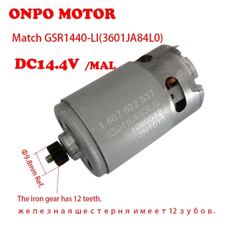 Двигатель постоянного тока ONPO,GSR1440-LI,DC14.4VMAL,12 зубьев, 1607022537,HC683LG, может использоваться для Bosch,3601JA84L0, электрической дрели
