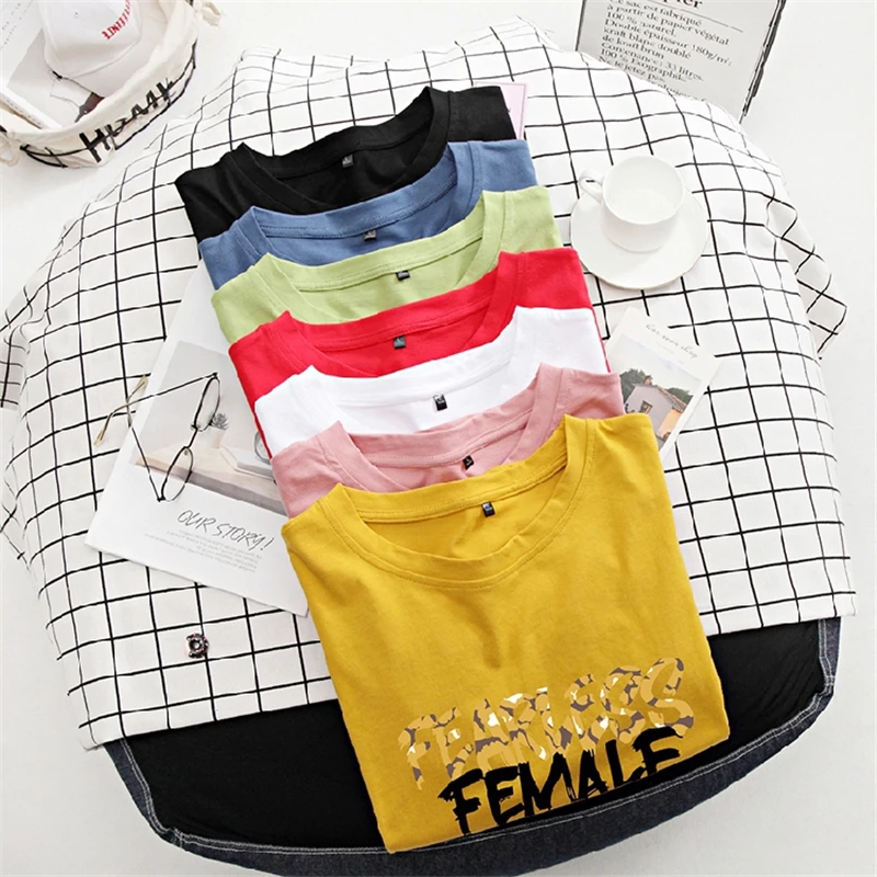 Футболка Hirsionsan женская с буквенным принтом, хлопковая тенниска в Корейском стиле, майка оверсайз, мягкая в стиле Ins, лето