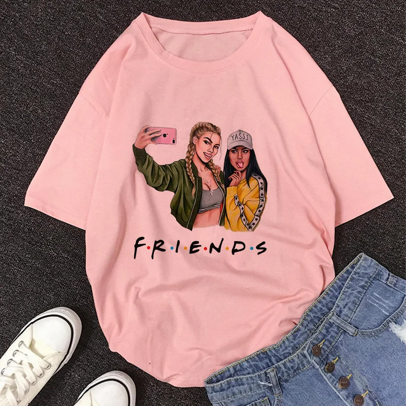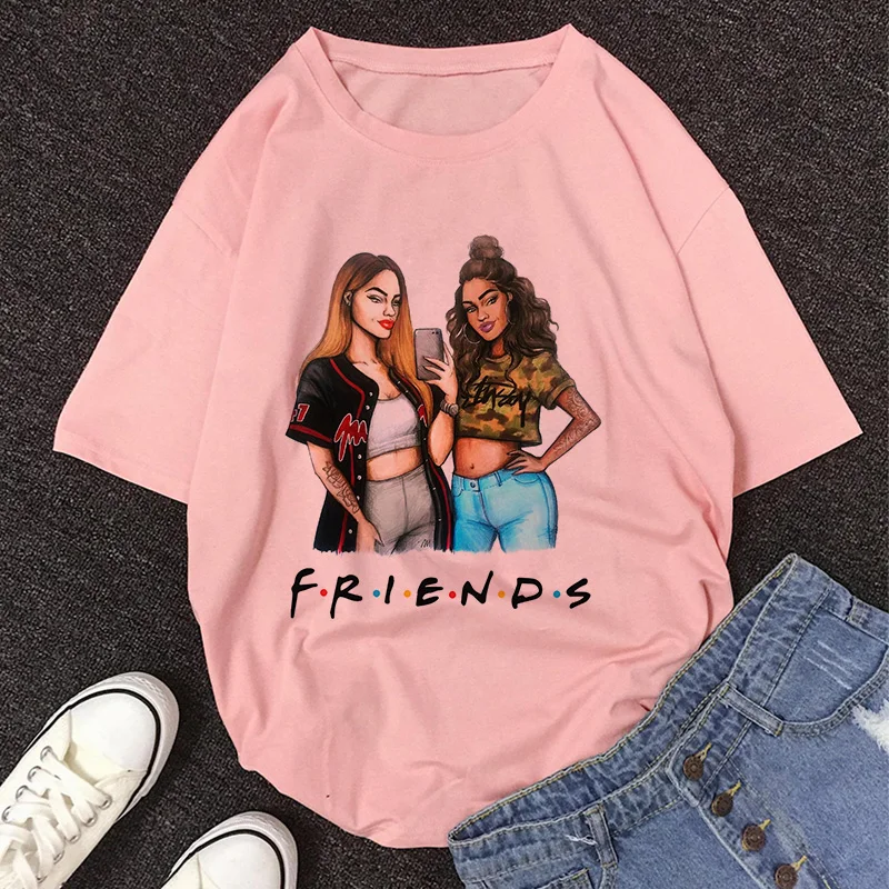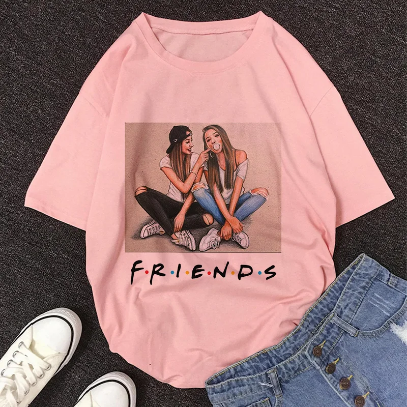 Женская футболка с принтом в стиле Харадзюку, розовая футболка в Ко...