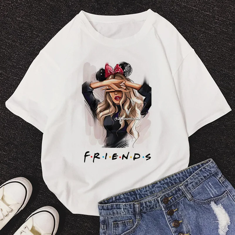 Женская футболка с коротким рукавом и круглым вырезом, с мультяшным...