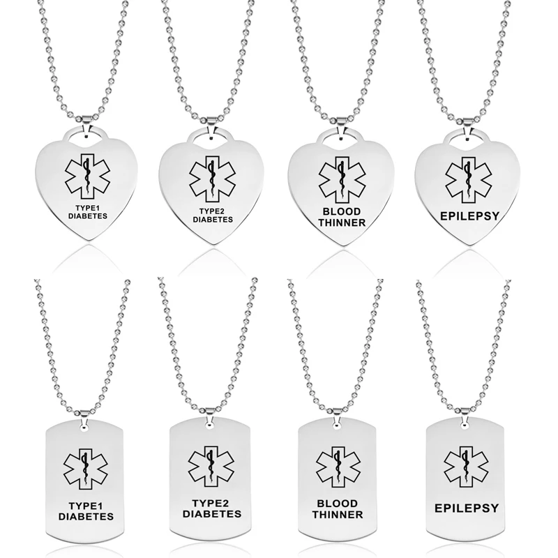 Медицинское ожерелье с оповещением, военная бирка из нержавеющей стали для диабетиков, подвеска для диабета, аварийная бижутерия для мужчин