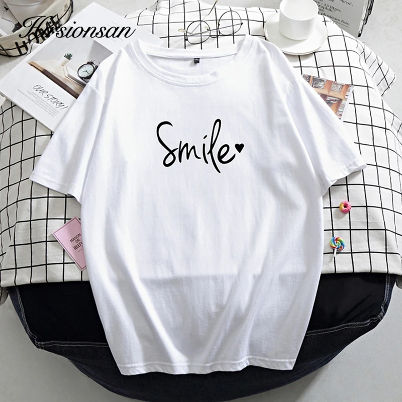 Футболка женская хлопковая с надписью, большого размера, в Корейском стиле
