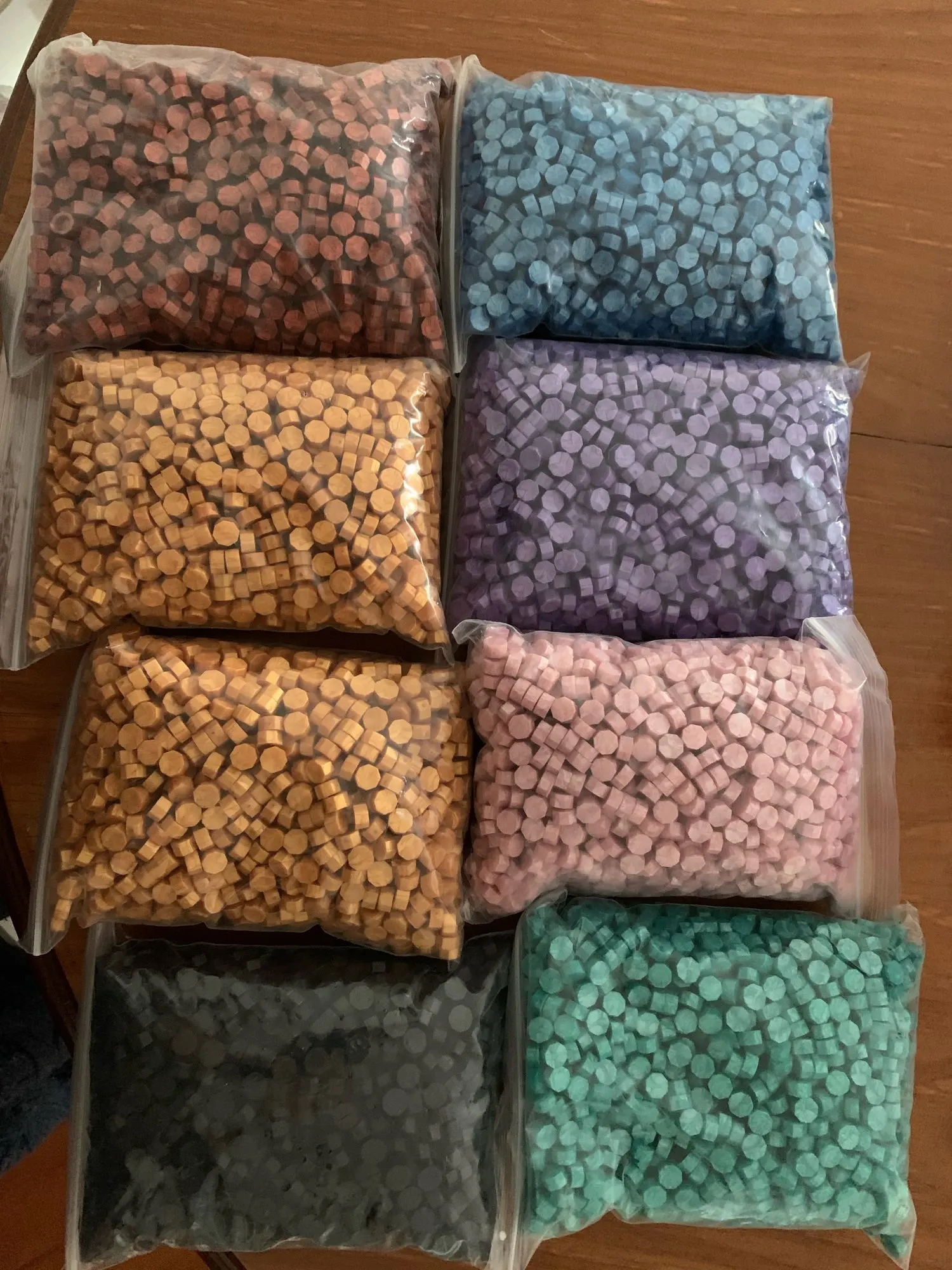 Все 5 кг сургуча прислали одной посылкой. Цвета соответствуют заказанным. довольна продавцом и заказом.
