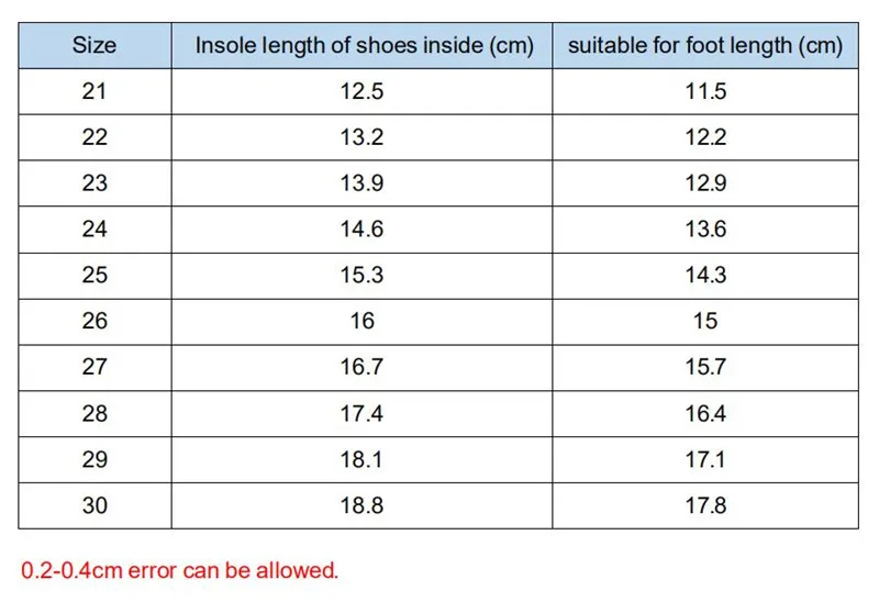 Size21, 22, 23, 24, 25, 26, 27, 28, 29, 30