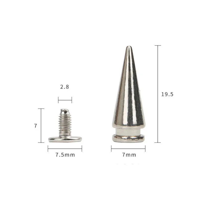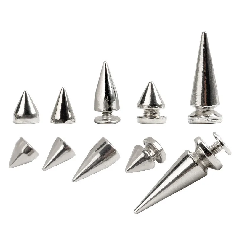 20 шт. Серебристые Металлические конические шипы для одежды, шпильки с отверткой и заклепками, кожаная сумка для поделок, украшение обуви, панк-рок пятна