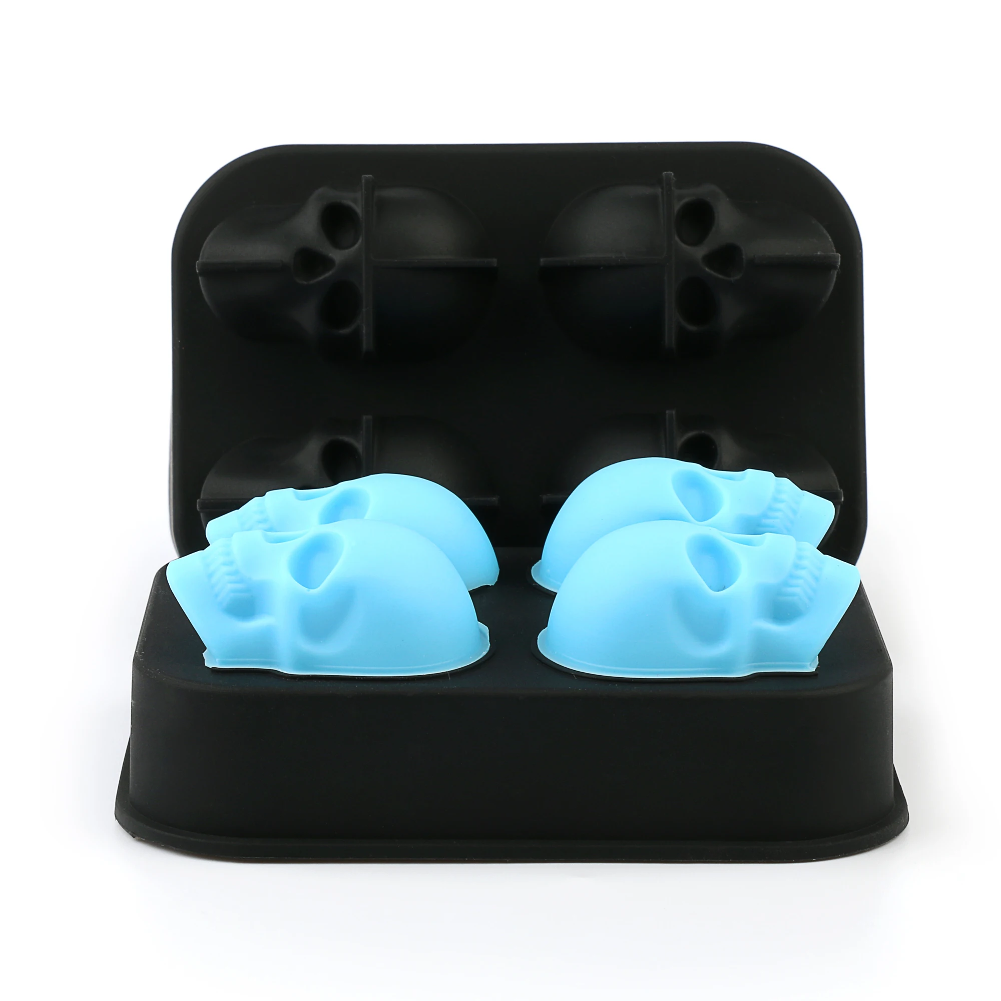 3D Силиконовый лоток для льда с черепом, 4 ячейки, силиконовый лото...