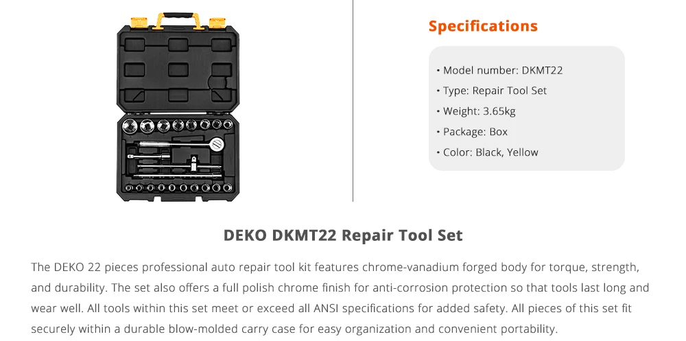 DEKO DKMT22, профессиональный набор инструментов для ремонта автомобиля автоматический гаечный ключ с трещоткой, отвертка, набор механические инструменты с выдувной коробкой